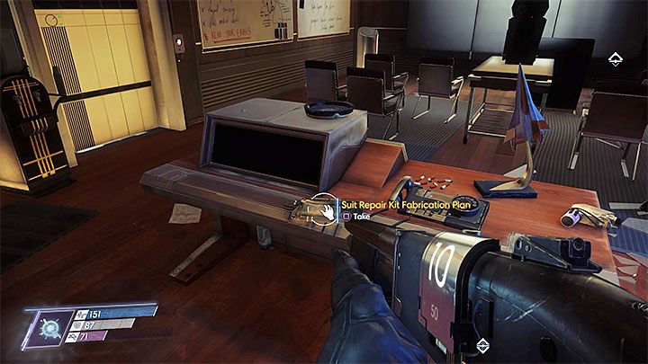 Projekt znajduje się w głównym hangarze na poziomie 1. Odnajdziesz go konkretnie na jednym z foteli obok zwłok Scotta Parkera.