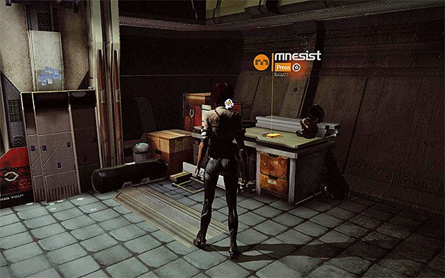 Skręć w prawo i skorzystaj ze schodów prowadzących do miejsca odtworzenia kolejnej wirtualnej projekcji. Tuż po załączeniu projekcji przytrzymaj klawisz/przycisk celowania i rozpocznij rytmiczne wciskanie klawisza/przycisku interakcji z zamiarem odblokowania sobie dostępu do tutejszych drzwi. Wkrocz do nowego obszaru i udaj się do kolejnych drzwi. Gra wkrótce wyświetli scenkę przerywnikową z udziałem poszukiwanej przez Nilin Madame.
