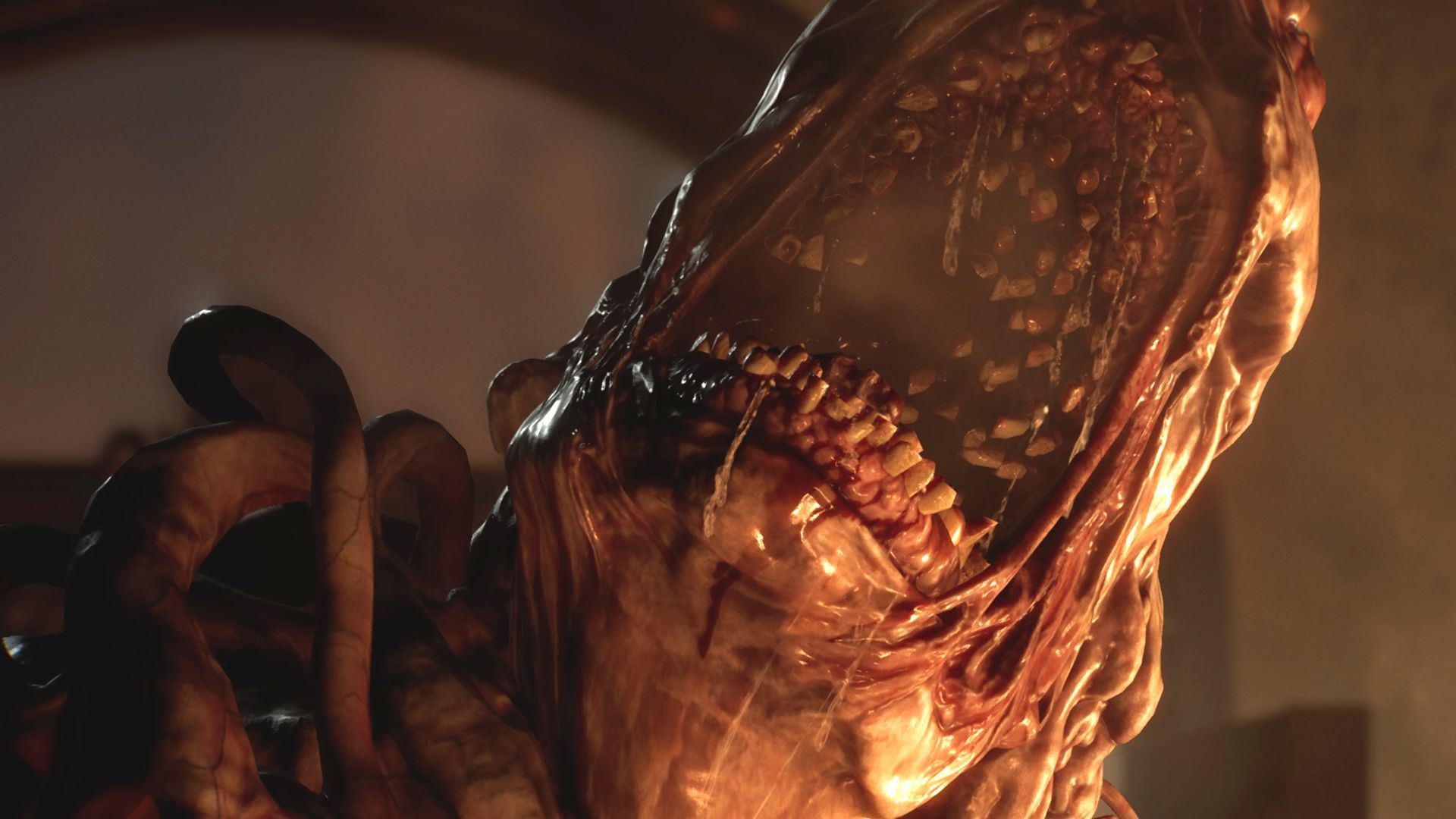 - Po udanej akcji ratunkowej Leon osobiście dotrze do kaplicy i spotkanie z Grace zostanie przerwane wraz z pojawieniem się wielkiego potwora z bąblami.