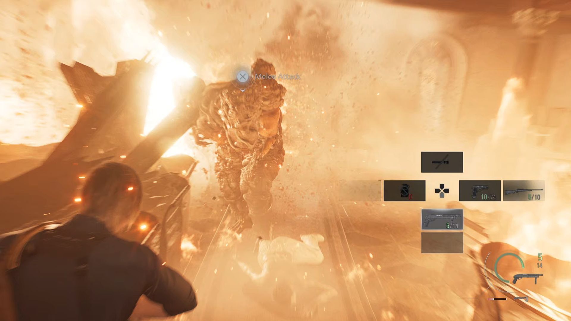 - Do bitwy w kaplicy obok Ośrodka dojdzie w trakcie rozgrywania jednego z etapów grając jako Leon. Po scenie ze śmigłowcem bohater będzie musiał początkowo ochraniać Grace i Emily próbujące dostać się do kaplicy.