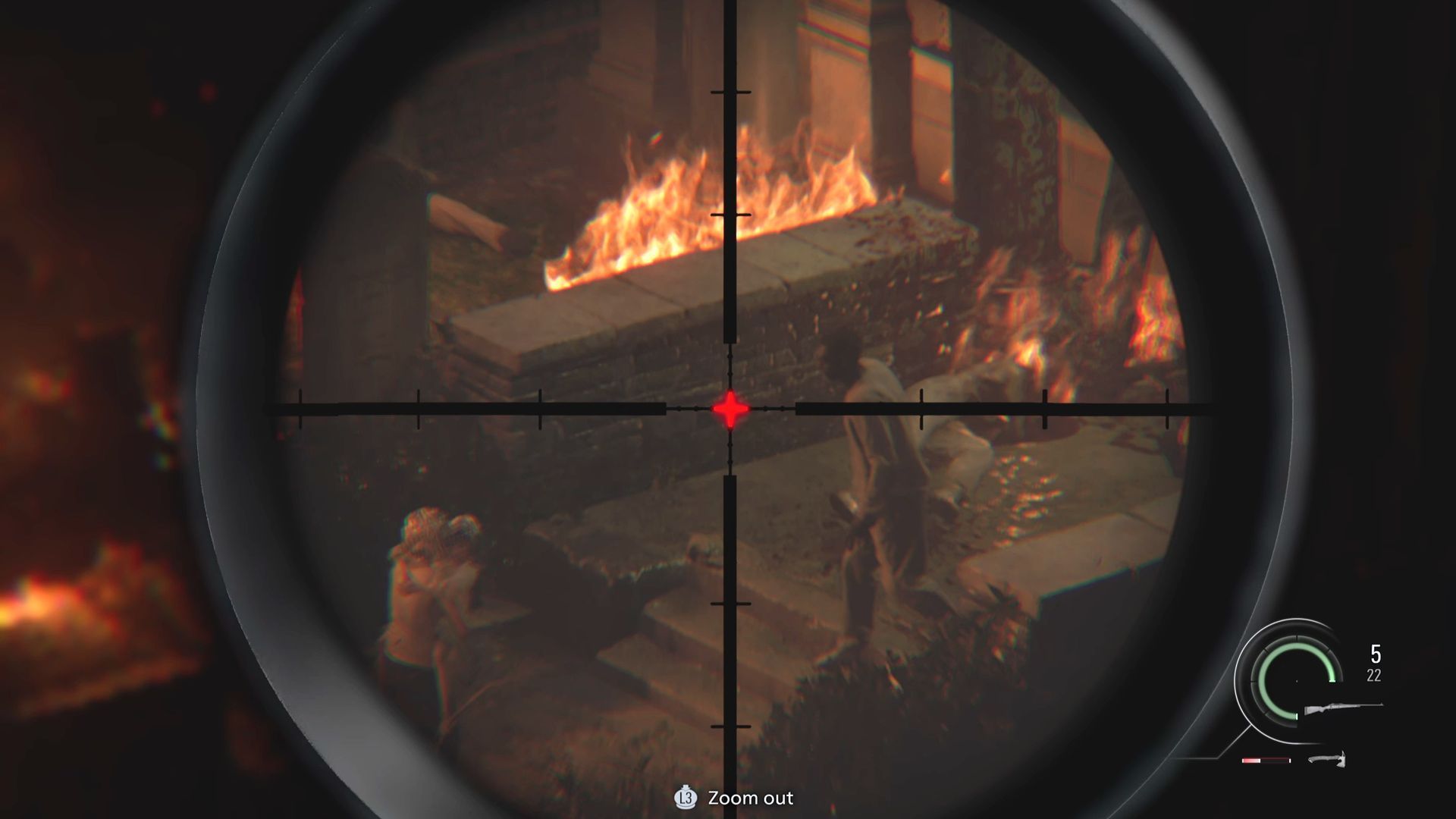 - W opisywanym etapie przejmiecie kontrolę nad Leonem i grając jako Leon musicie chronić obie dziewczyny. Bohater wykorzysta do tego celu karabin z lunetą, który automatycznie znajdziecie podczas przeprawy po dachach.
