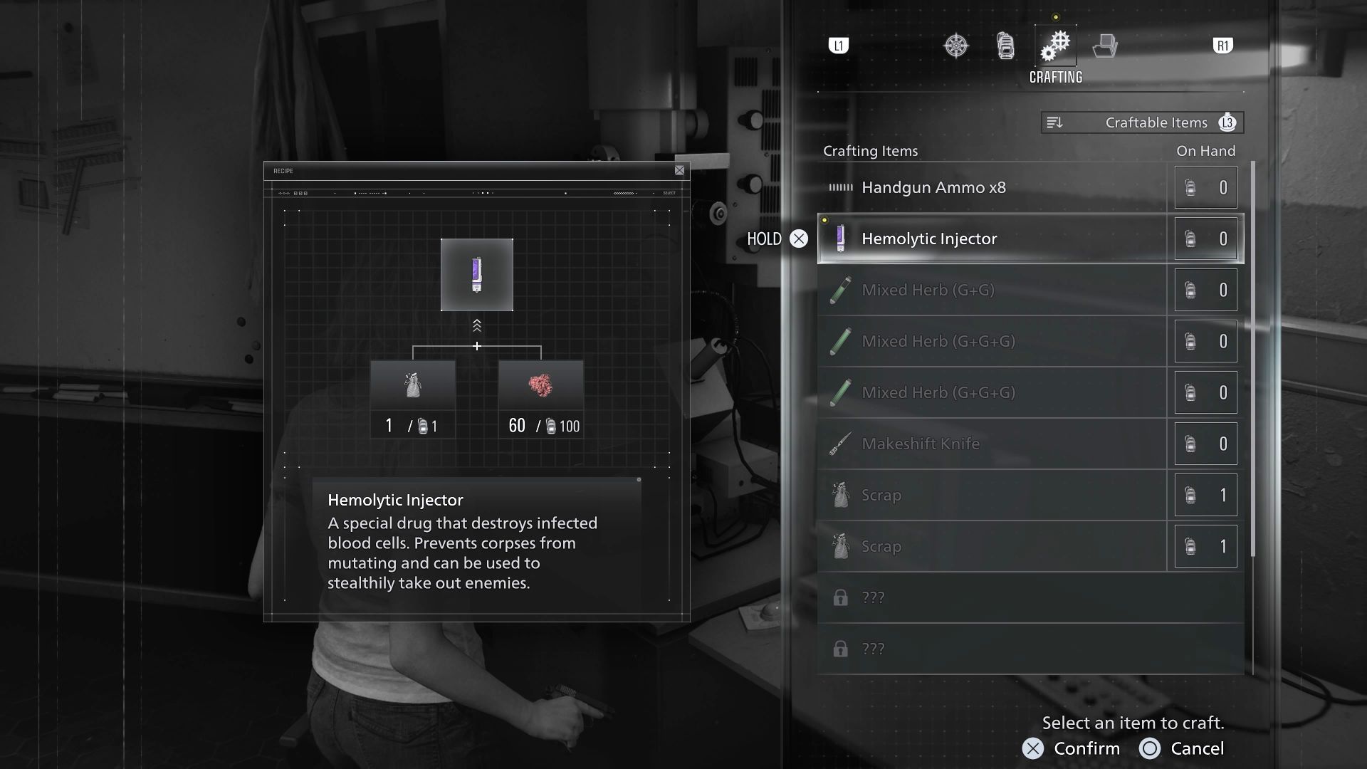 - Do stworzenia jednego aplikatora potrzeba 1x złom oraz 60x krew. Złom możecie przede wszystkim odnajdywać jako loot, choć później pojawi się też opcja przetwarzania go z innych przedmiotów. Krew możecie kolekcjonować z pomocą zbieraka krwi - od pokonanych wrogów, a także z wiader i innych pojemników z krwią. Warto zawsze mieć przy sobie co najmniej 1-2 aplikatory na wypadek napotkania potwora, którego trudniej się pozbyć, czy łatwego wybronienia się po złapaniu Grace.