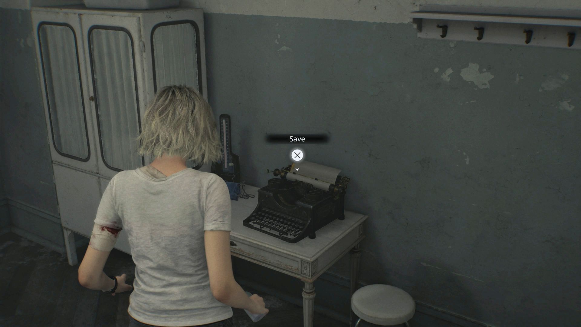 - Grace może korzystać z maszyn do pisania doskonale znanych z poprzednich części serii Resident Evil. Pierwszą maszynę znajdziecie w pokoju 201 w Ośrodku (Care Center) - ma to miejsce niedługo po znalezieniu się w tej lokacji po raz pierwszy i rozwiązaniu prostej zagadki z odnalezienia klucza do pomieszczenia 201 (szuflada w pobliskim korytarzu).