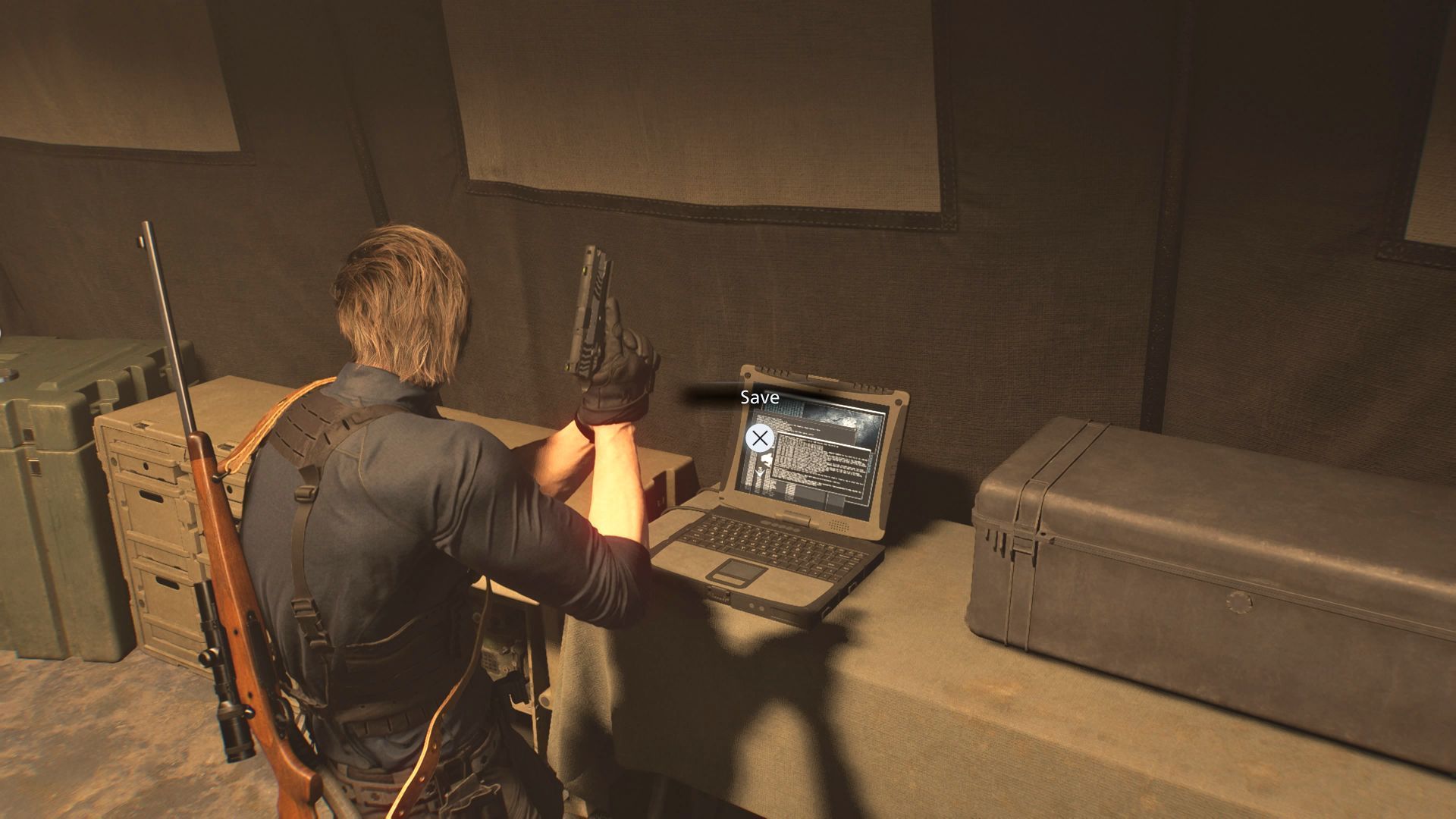 - Sytuacja zmienia się po dotarciu do ruin Raccoon City w dalszej części kampanii. W trakcie eksploracji dotrzecie do namiotu BSAA, w którym po raz pierwszy znajdziecie laptop - to odpowiednik maszyny do pisania dla Leona i to za jego możecie tworzyć ręczne zapisy.