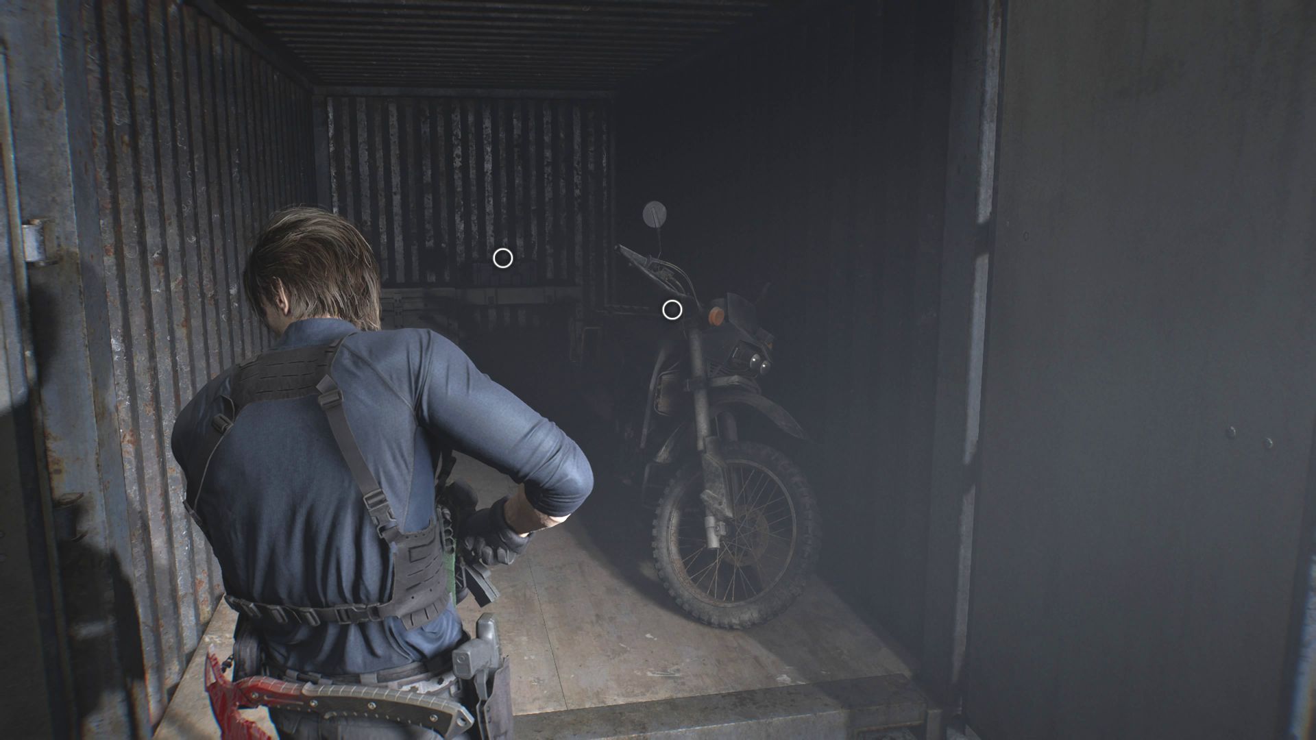 - Motocykl - interakcja z nim nie jest początkowo dostępna, ale Leon użyje go po zniszczeniu bramy do wyruszenia w stronę centrum Raccoon City.