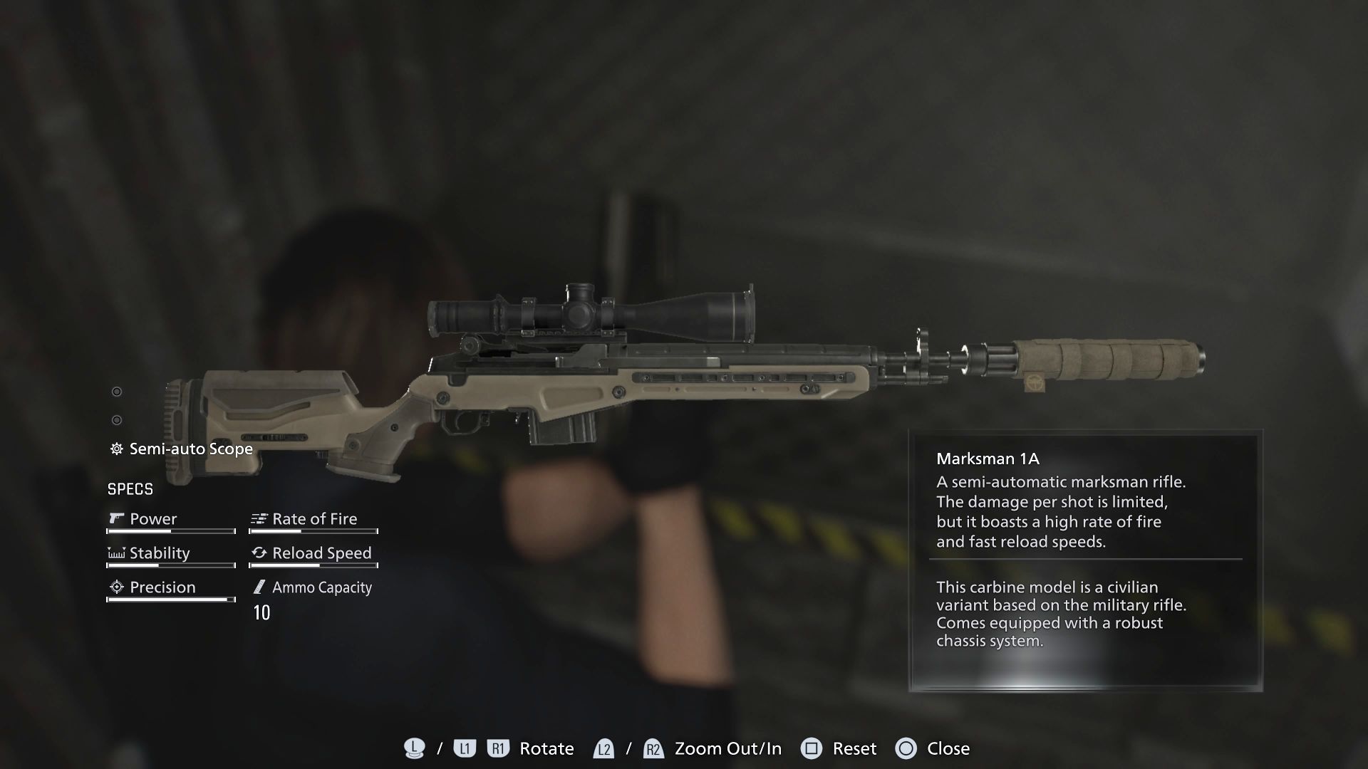 - Najważniejszy przedmiot do znalezienia w kontenerze to karabin półautomatyczny Marksman 1A - ma on mniejszą siłę rażenia od tego zdobytego w Ośrodku, ale pozwala szybciej oddawać strzały. Najlepiej wybrać pozostanie przy jednym karabinie, a drugi sprzedać po powrocie do skrzyni z zapasami żeby nie zajmował miejsca w inwentarzu Leona.