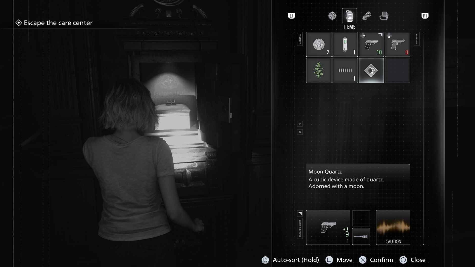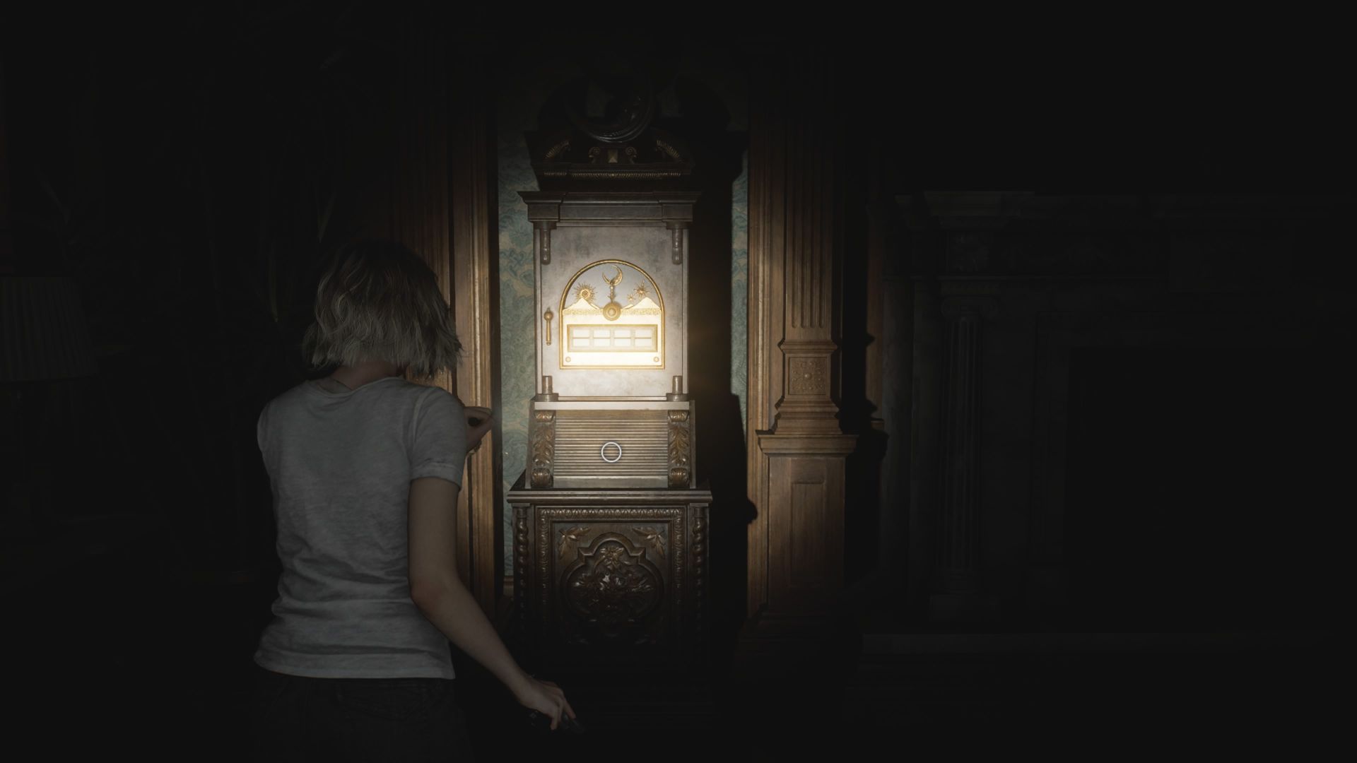 - W szafie składowany jest kwarc księżycowy (Moon Quartz). To 1 z 3 obiektów do włożenia do slotu na drzwiach w holu centralnym na parterze Ośrodka. Ma to na celu odblokowanie wyjścia na dziedziniec.