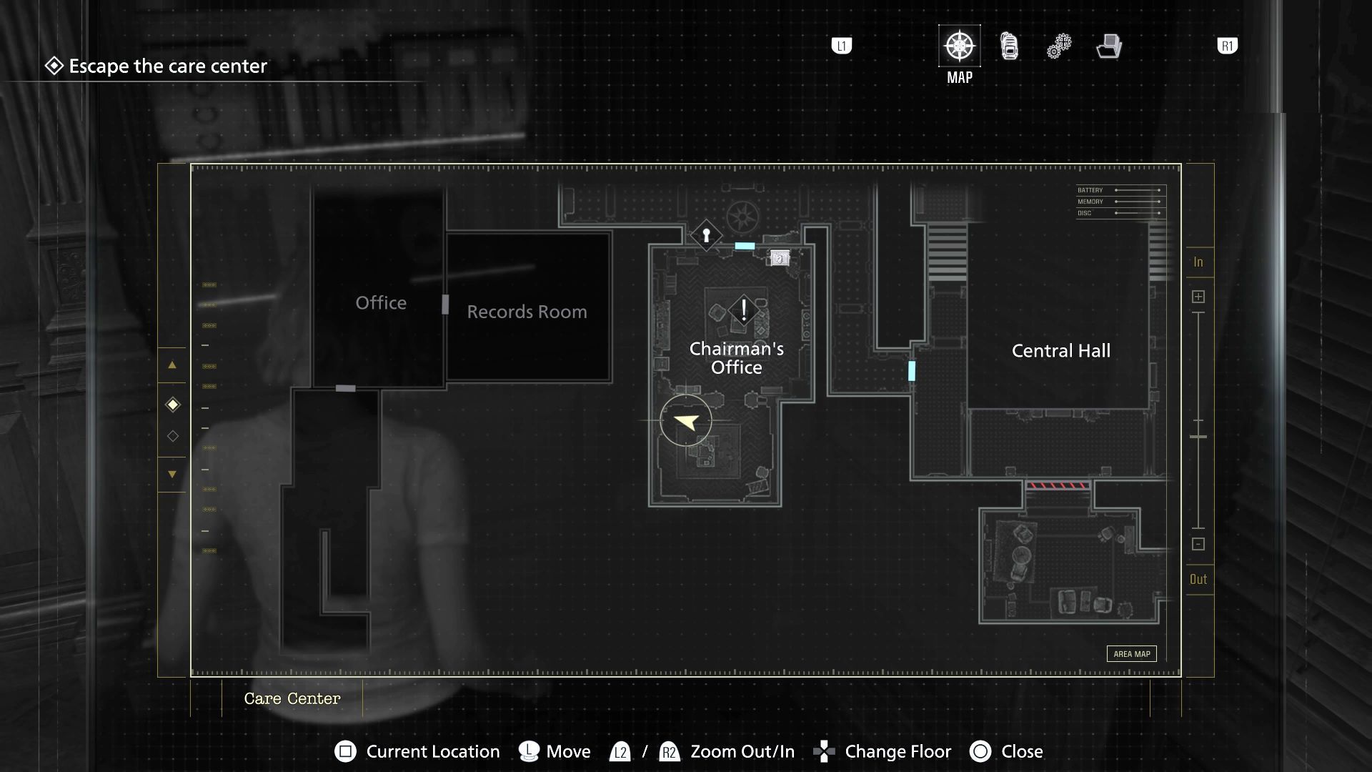 W biurze prezesa jest też skrzynka z czerwonym klejnotem (Red Jewel). To inny przedmiot questowy, który może posłużyć do otwarcia kasyna na parterze Ośrodka.