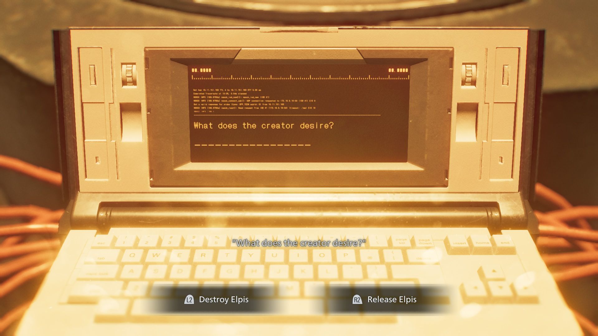 - Bohaterowie powrócą do wielkiego okrągłego pomieszczenia o nazwie Centralny system oczyszczania PANDORA. Po nowej scence przerywnikowej Grace skorzysta z terminalu i pojawi się pytanie Czego pragnie stwórca?. Dostępne są tu dwa warianty - Zniszcz Elpis oraz Wypuść Elpis. Każdy z nich prowadzi do osobnego zakończenia.