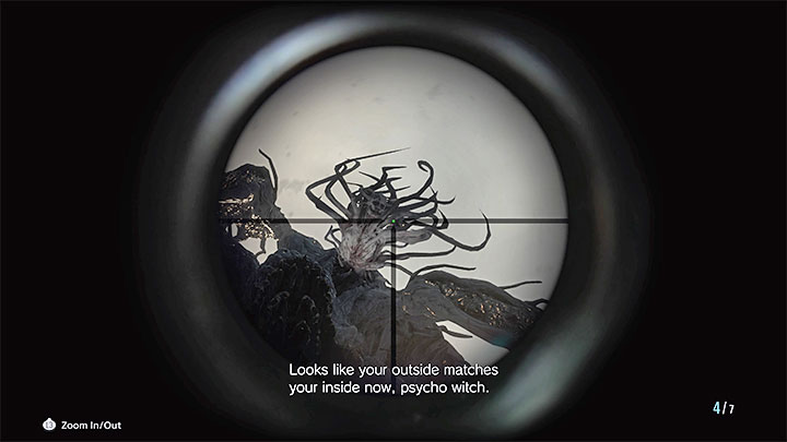 Podczas atakowania wielkiego potwora zawsze celujcie w "wystającą" z niego zmutowaną Lady Dimitrescu. Jest to niewielka część ciała potwora, tak więc musicie wykazać się dużą precyzją przy oddawaniu strzałów. Rozpocznijcie od chwilowego przepędzenia kreatury.