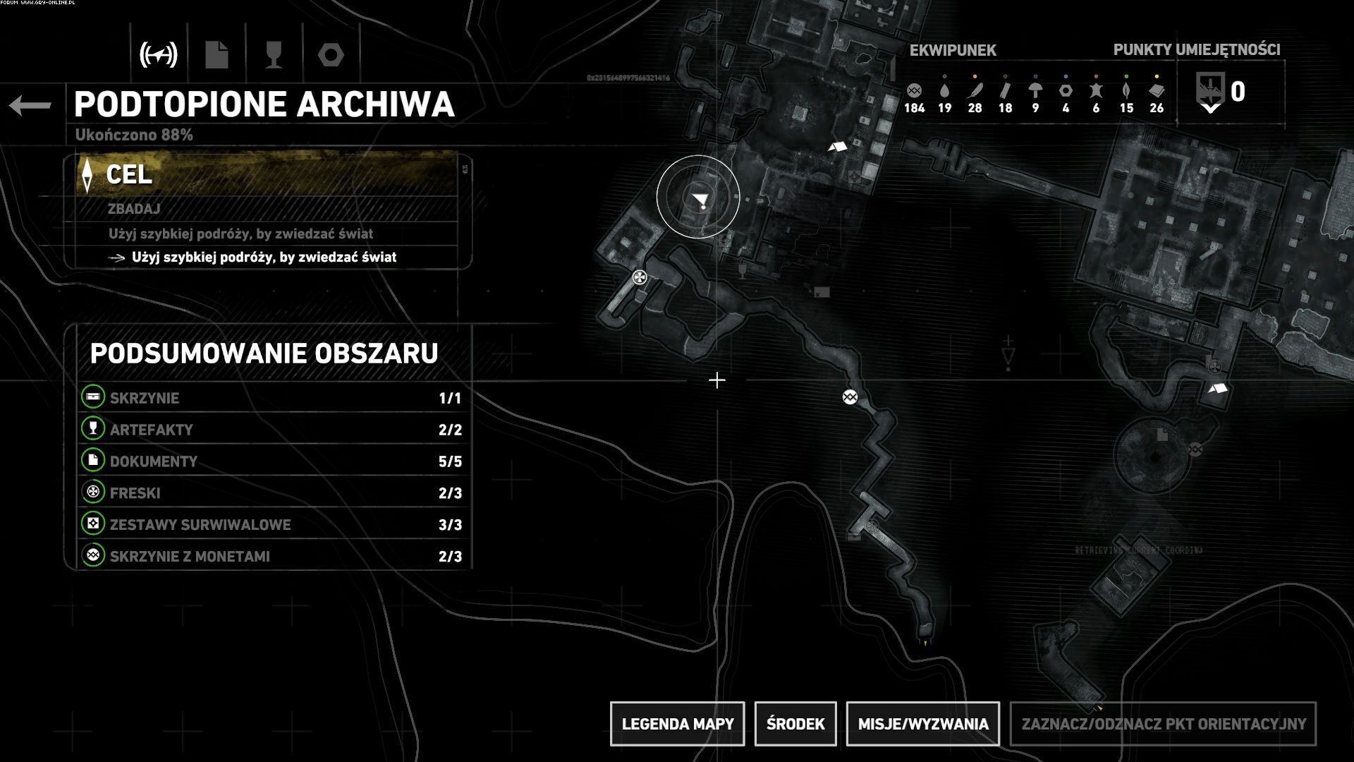 Na mapie "Zaginionego miasta" nie zaznaczono jednej mapy archiwisty - w budynku pomiędzy drugim zestawem survivalowym, a trzecią skrzynią monet. Ponadto mapa archiwisty w "Syberyjskiej dziczy" znajduje się na wschodniej platformie nadrzewnej.