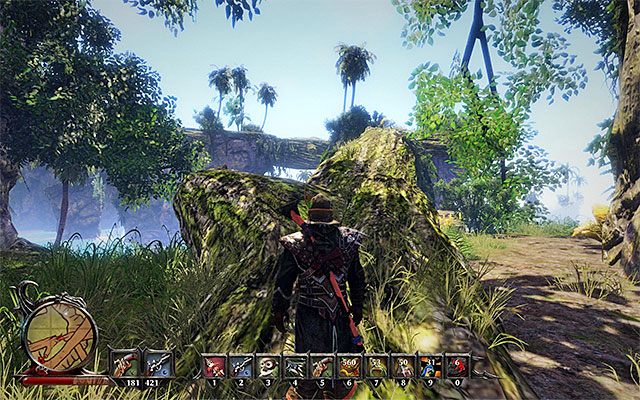 Po zabezpieczeniu pierwszej wysoko położonej półki przejdź po kolejnym dużym drzewie na półkę zlokalizowaną na południe stąd. Musisz się bardzo pilnować, bo w miejscu tym przebywają między innymi dwa bagienne golemy (Swamp Golem). Eliminacja golemów nie jest obowiązkowa, ale jeśli mimo wszystko chcesz się na nią zdecydować to atakuj je po kolei i cały czas pamiętaj o trzymaniu się z dala od krawędzi.