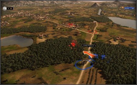 Zbierz swoje oddziały piechoty i ustaw je w lesie po obydwu stronach drogi (żadna z jednostek nie może wystawać na otwartym terenie). Teraz wystarczy chwilę poczekać, aż drogą nadjadą wrogie czołgi, które zostaną błyskawicznie zniszczone (obrazek poniżej). Jeśli bowiem piechota ukrywająca się w lasach oraz miastach zaatakuje wroga z zaskoczenia to zada mu trzy razy większe obrażenia niż normalnie. Po odparciu ataku zostaw swoich żołnierzy, aby mogli przeprowadzać kolejne zasadzki.
