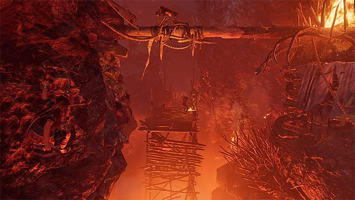W nowej lokacji Lara spotka Królową Potępionych Yaaxil, przy czym nie będzie ona wrogo nastawiona. Co więcej, będziesz musiał współpracować ze zdziczałymi tubylcami, którzy będą pomagali Larze w eliminowaniu żołnierzy Trójcy w drodze do lokacji gdzie przebywa Dominguez. Przy okazji otrzymasz unikalne nakrycie głowy i odblokujesz trofeum Królowa Potępionych. Po przejściu kilkunastu metrów odblokujesz też w dzienniku zdjęcie Karmazynowego Ognia (The Crimson Fire).