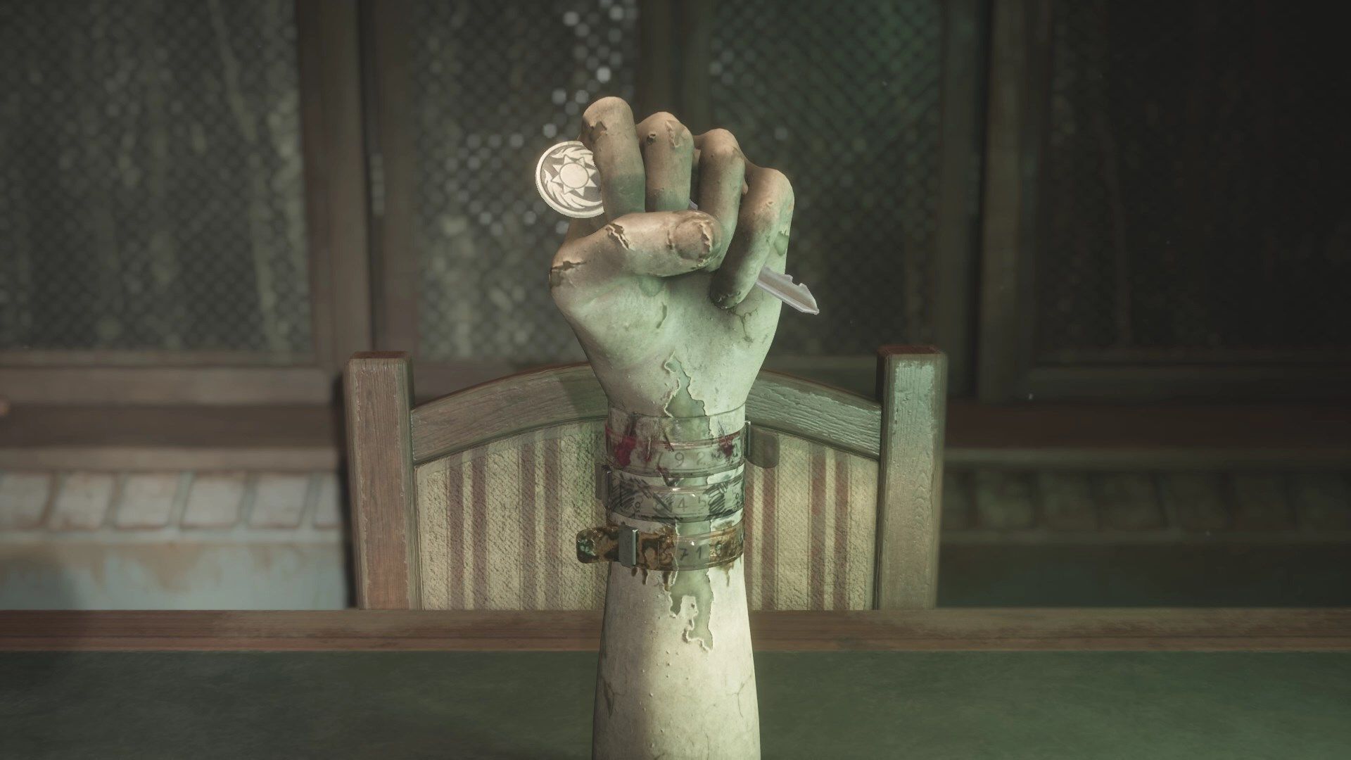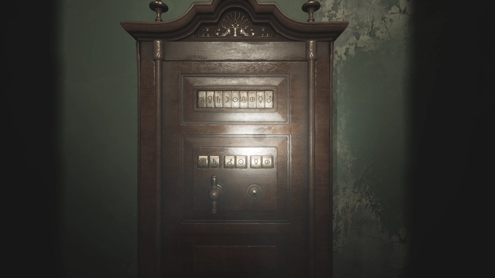 Po poprawnym umieszczeniu bransolet posążek upuści klucz do sąsiedniego pokoju. Poznacie również kombinację do sejfu, czyli 92-45-71. Sejf zamiast cyfr przyjmuje jednak symbole, musicie więc rozszyfrować, które symbole odpowiadają którym cyfrom.