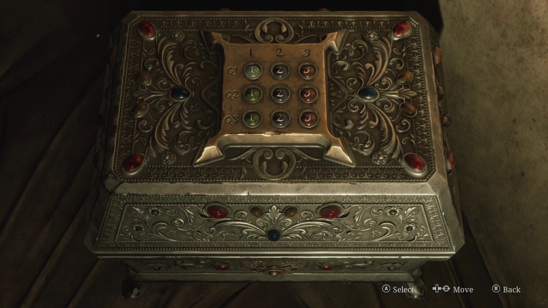 Jakiś czas później, po zdobyciu dwóch pierścieni i tuż przed ucieczką ze szpitala, możecie odwiedzić aptekę, gdzie znajdziecie ozdobne pudełko. Tutaj można wpisać odpowiedzi na pytania. Kodem do pudełka jest zatem 231 (wpisywane od góry). Macie tylko jedną szansę na otwarcie pudełka. Jeśli się wam uda, otworzy się ono, zaś wy będziecie mogli zabrać ze środka pięć nabojów do strzelby i dwie strzykawki.