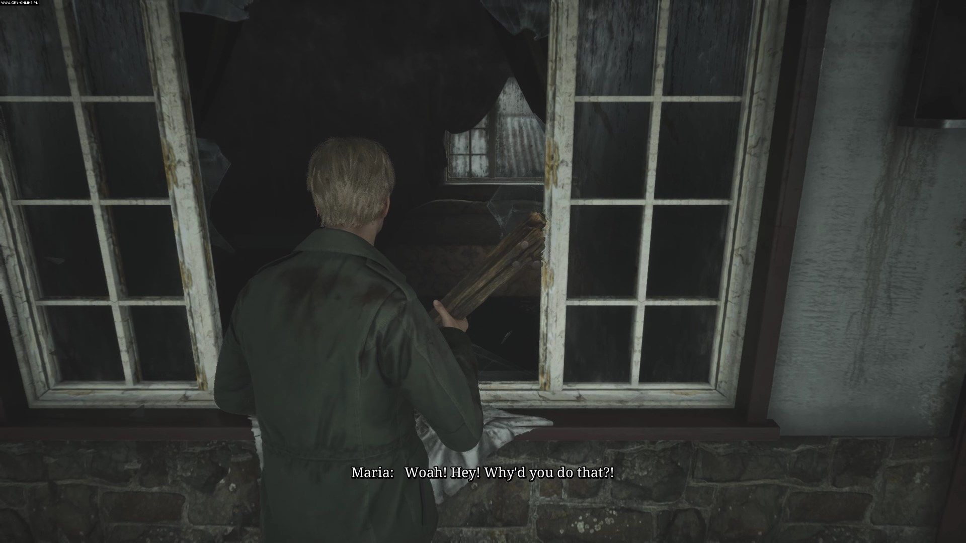 Wróćcie do recepcji i otwórzcie sejf. Prawidłową kombinacją jest 0451. Z sejfu zabierzcie klucz do bramy. Usłyszycie krzyk - na zewnątrz potwór zaatakował Marię. Szybko zatłuczcie go deską. Gdy Maria wam towarzyszy, musicie ją eskortować, ponieważ jej śmierć to koniec gry.