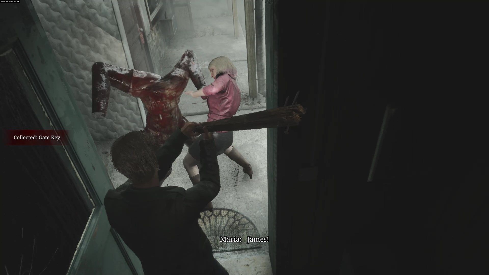 Po uratowaniu Marii otwórzcie bramę kluczem i idźcie dalej. Musicie udać się wzdłuż ulicy - budynki wokół są niedostępne, lecz obok nich możecie znaleźć nieco amunicji, warto więc nieco zbaczać z głównej trasy. W końcu dotrzecie do końca ulicy gdzie zobaczycie cutscenkę. Podczas cutscenki James automatycznie pozbędzie się drewnianej deski i zastąpi ją stalową rurą. Jest to wasza nowa broń do walki wręcz. Funkcjonuje ona identycznie do deski, lecz zadaje większe obrażenia.