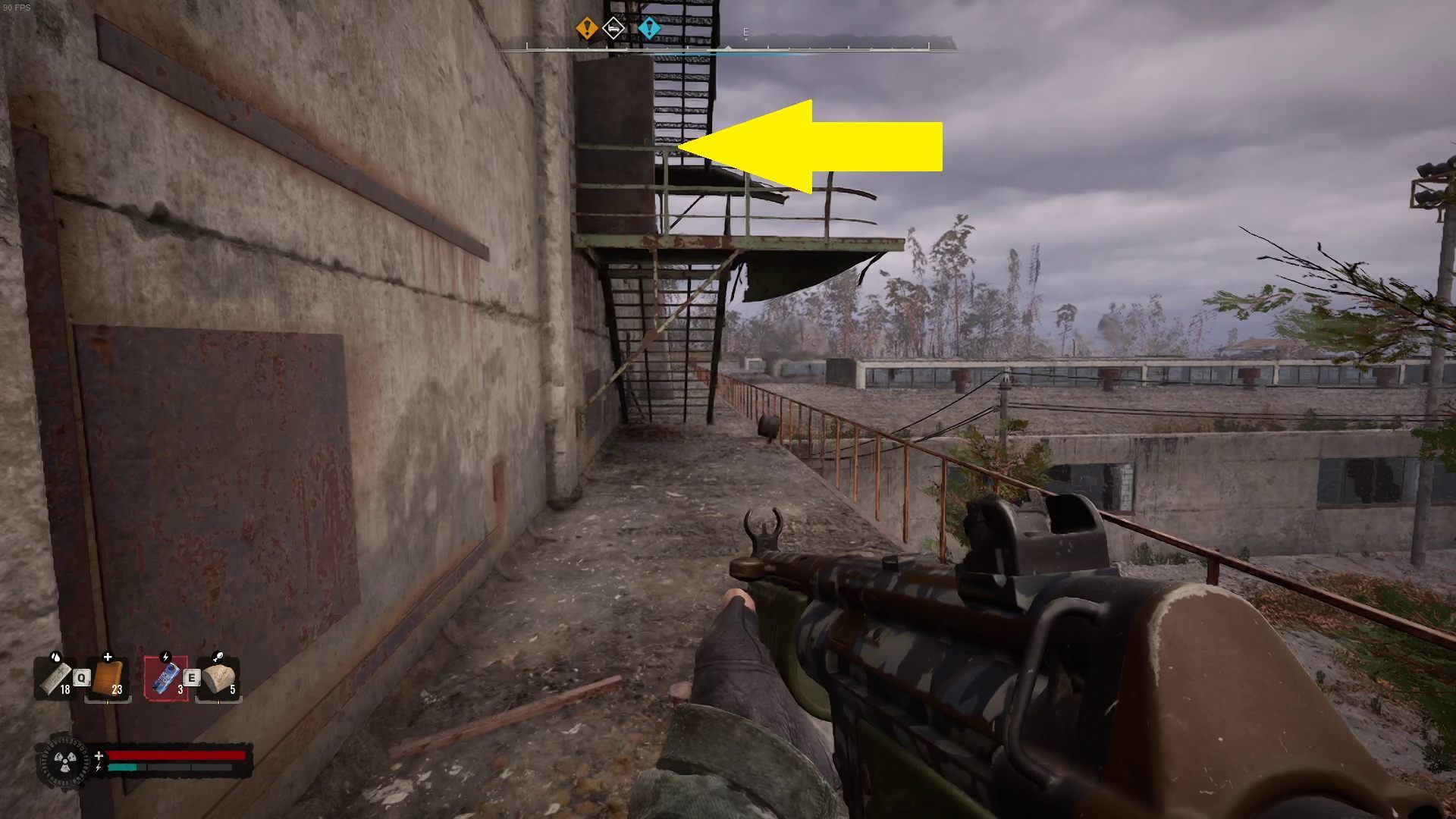 Wejdźcie na wieżę, a następnie przeskoczcie na budynek. Jeżeli nie chcecie uśmiercać Kwaszka, szybko wejdźcie po drabinie znajdującej się na lewo. W przeciwnym wypadku możecie zabić południowca-zombie.