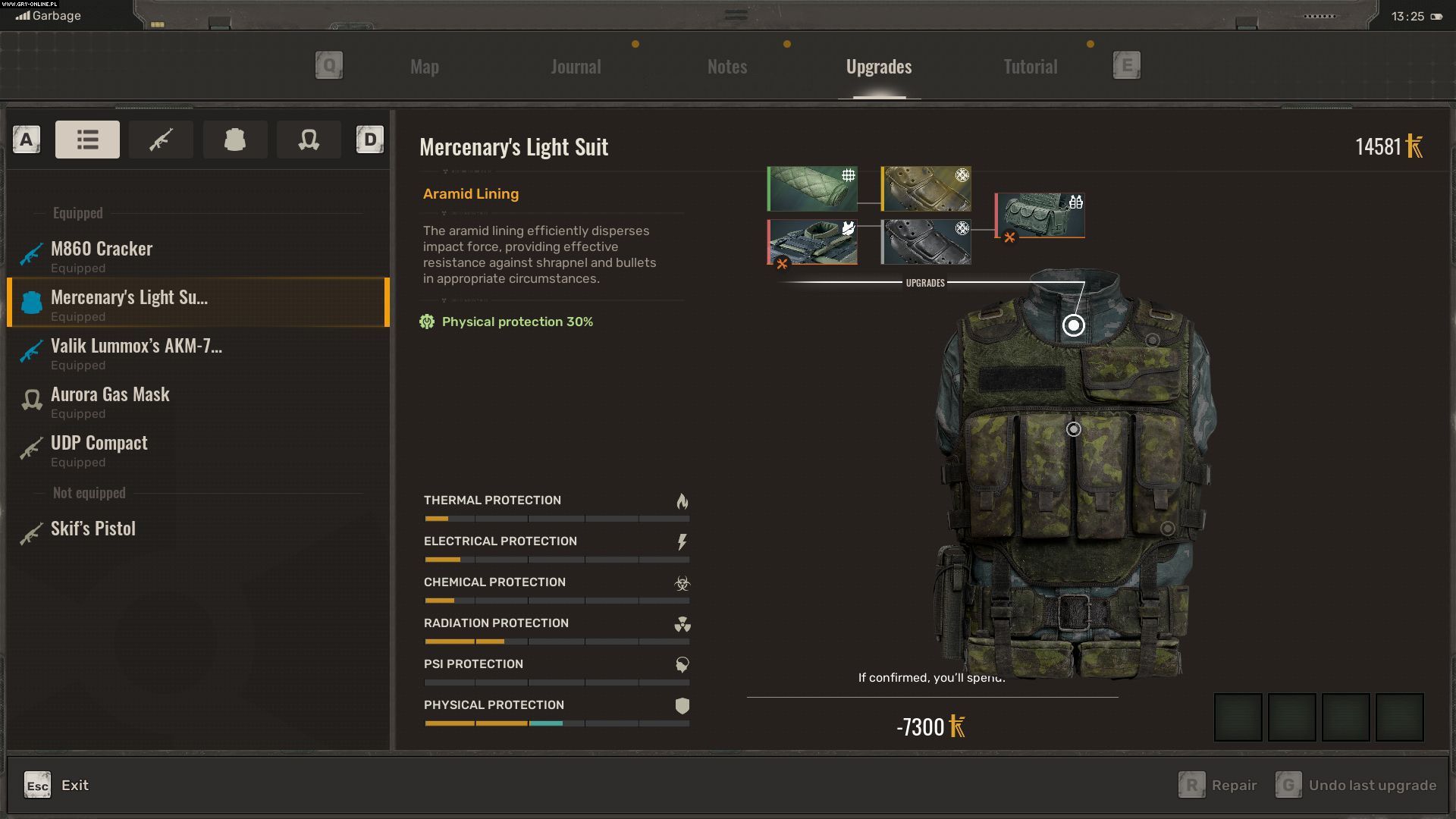 U techników możecie również ulepszać i modyfikować swój sprzęt. Wystarczy, że wybierzecie interesującą Was broń lub pancerz, a następnie klikniecie w kropeczki przy danej części wybranego sprzętu.