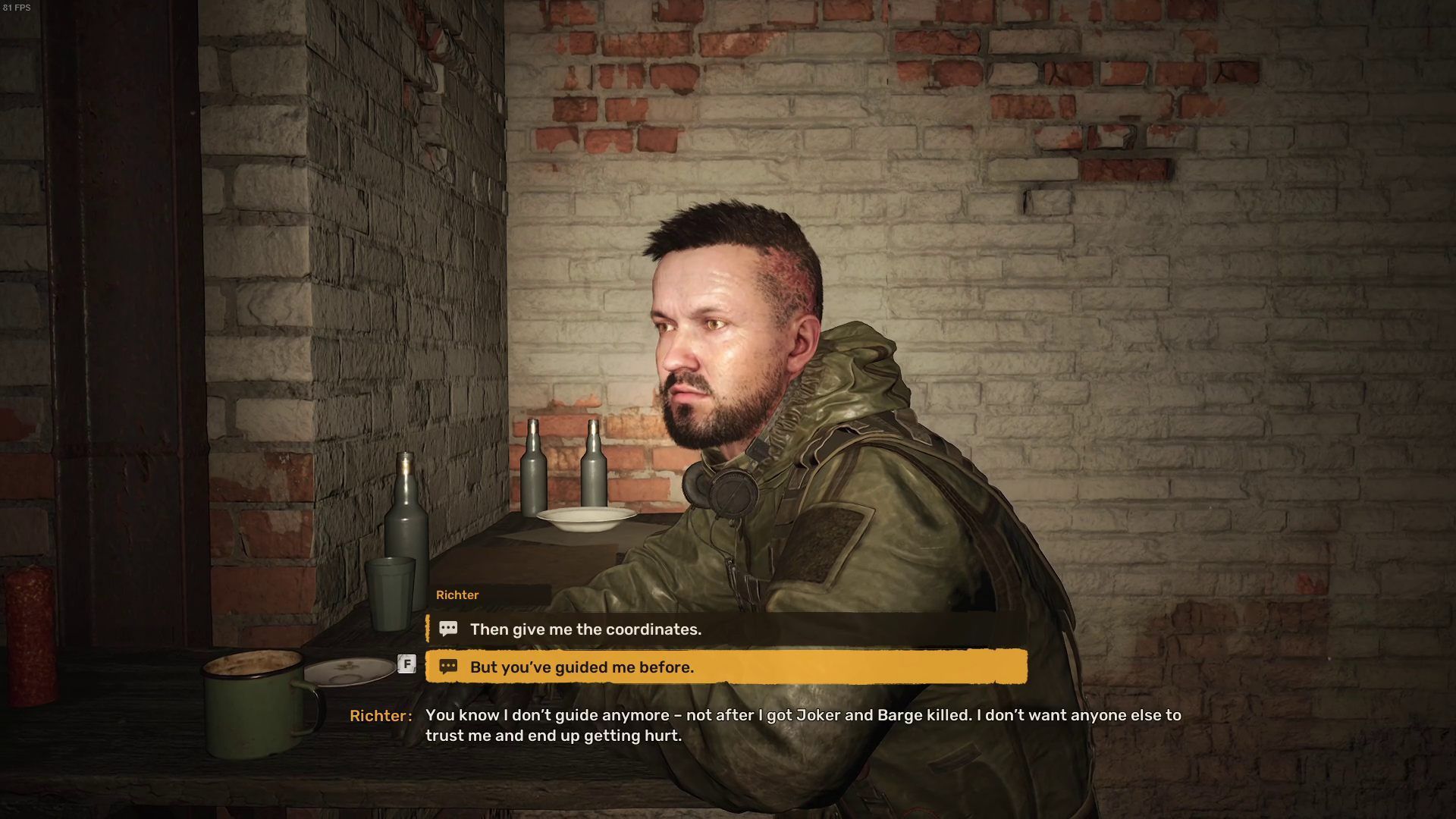 Mężczyzna poleci Wam zdobycie obroży z zabitego mutanta. Możecie podjąć się tego wyzwania samodzielnie, lecz w naszej opinii najłatwiej jest skorzystać z pomocy Richtera. Wybierzcie odpowiednią opcję dialogową i poproście go o zaprowadzenie na miejsce polowania. Richter przystanie na Waszą propozycję.