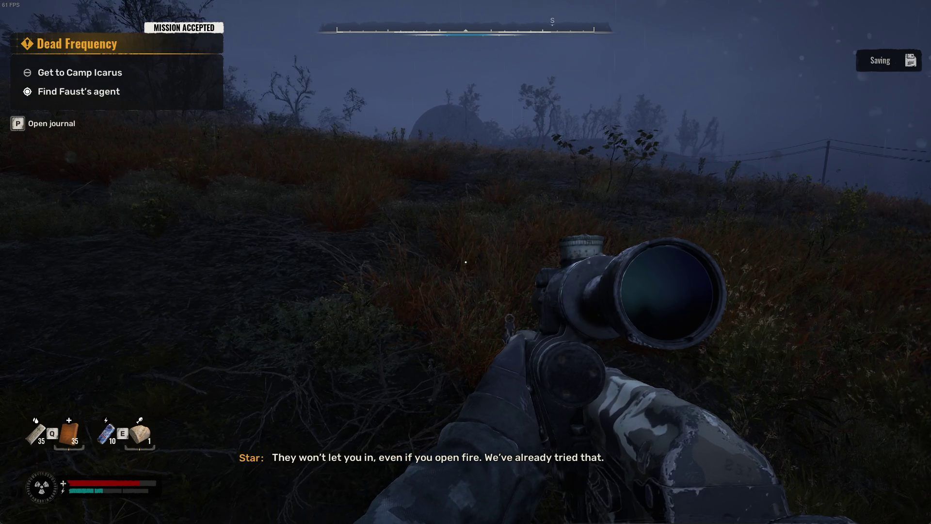 Zadanie Martwa częstotliwość (Dead Frequency) aktywuje się automatycznie po zakończeniu misji Pościg za duchami (Chasing Ghosts). Znacznik misji skieruje Was w kierunku obozu Ikar.