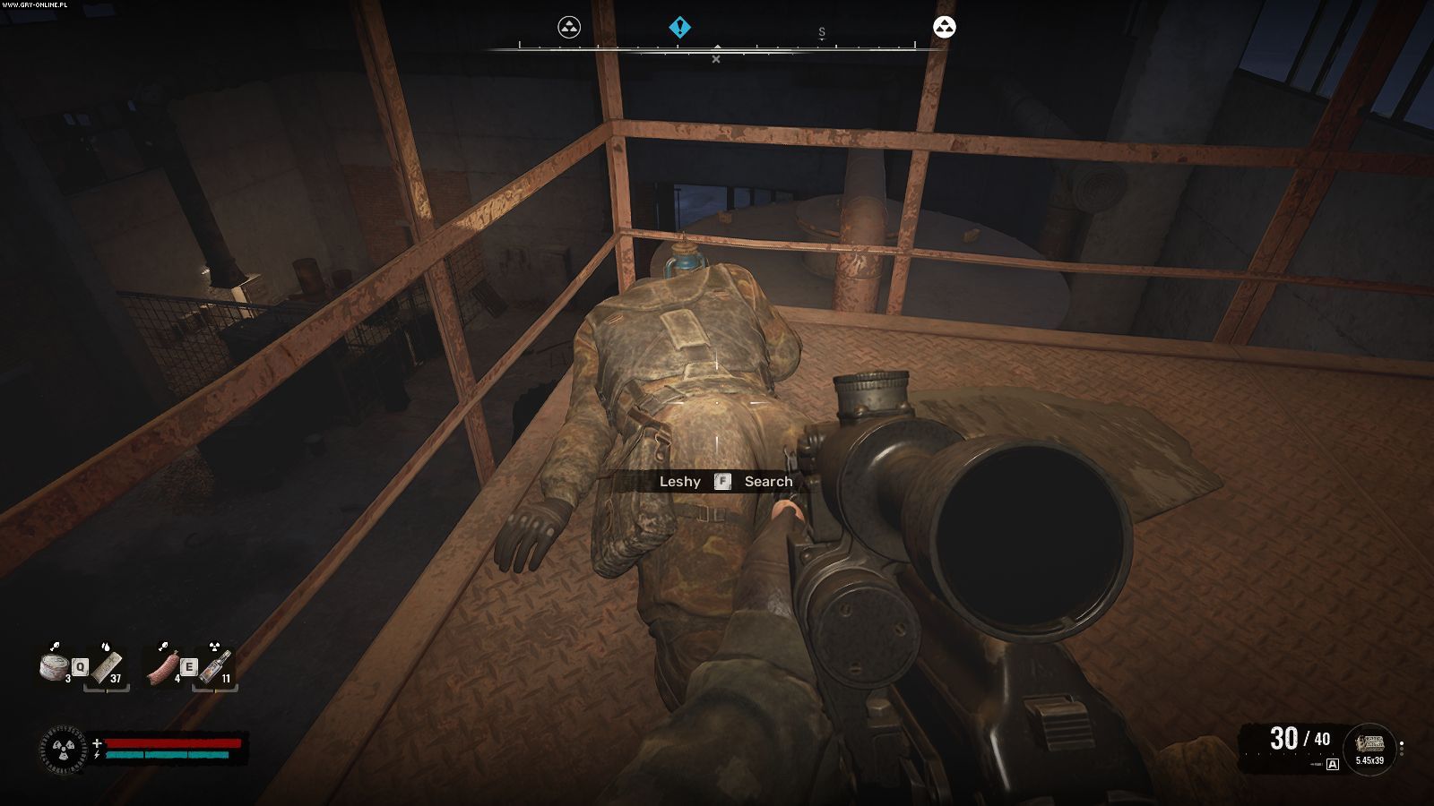 Karabin posiada Leszy - osoba wrogo nastawiona do nas od samego początku. O ile walka z nim nie jest wymagająca, gdyż jest on sam, a znajduje się na wyższym piętrze, to samo wejście do budynku jest nieco problematyczne. Uważajcie na pułapki z linką. Gdy w nie wejdziecie, granat wybuchnie, zada Wam sporo obrażeń oraz ogłuszy na dłuższy czas. Możecie rozbroić linki podchodząc do nich lub zabierając granat.