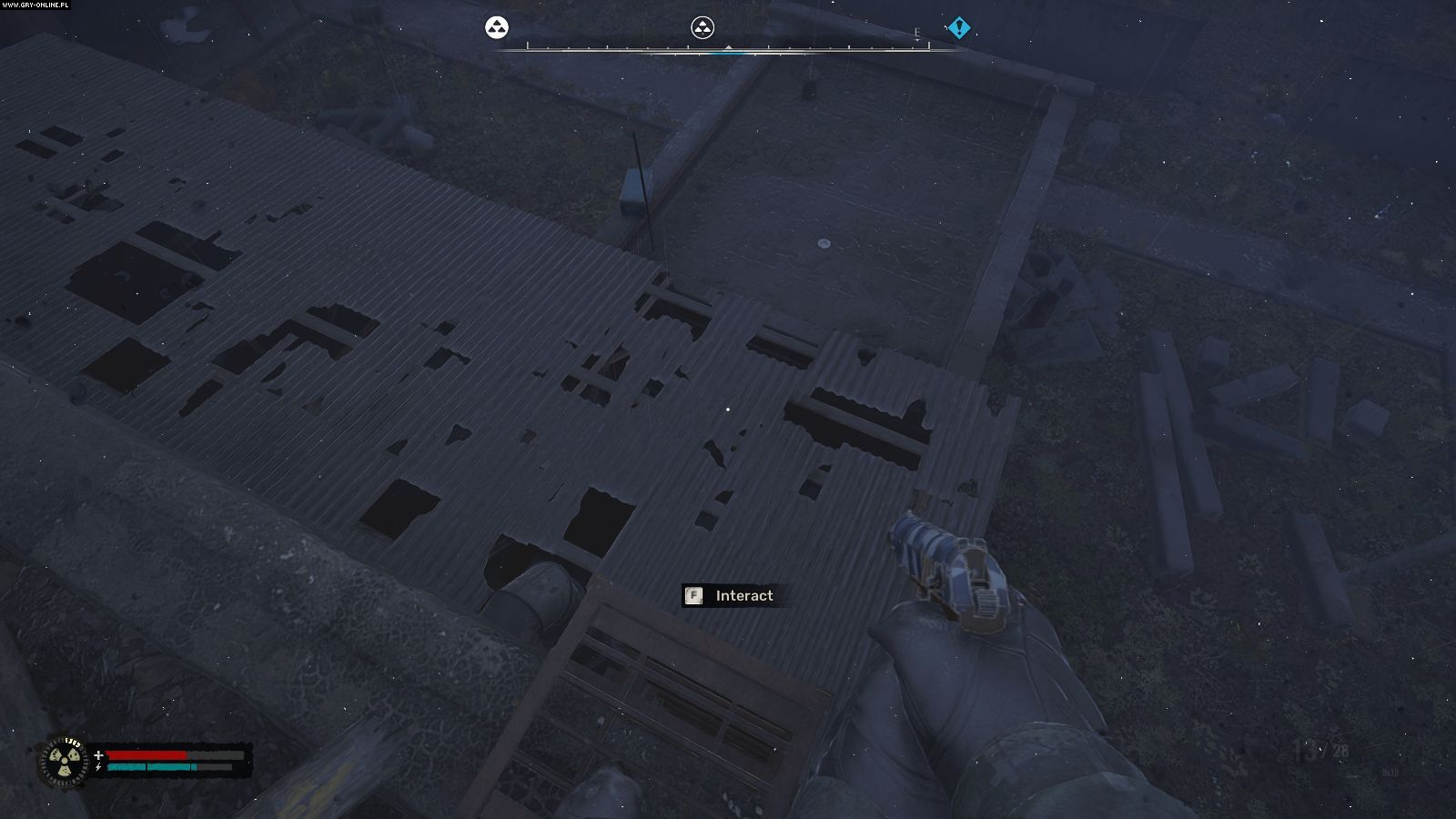 Na północ od Wieży Ciśnień, niedaleko obozu Zalisja, zauważycie wieżę przechowującą wodę (patrz zielony kursor gracza). Wejdźcie na szczyt korzystając z drabiny, uważając na anomalie wsysające.