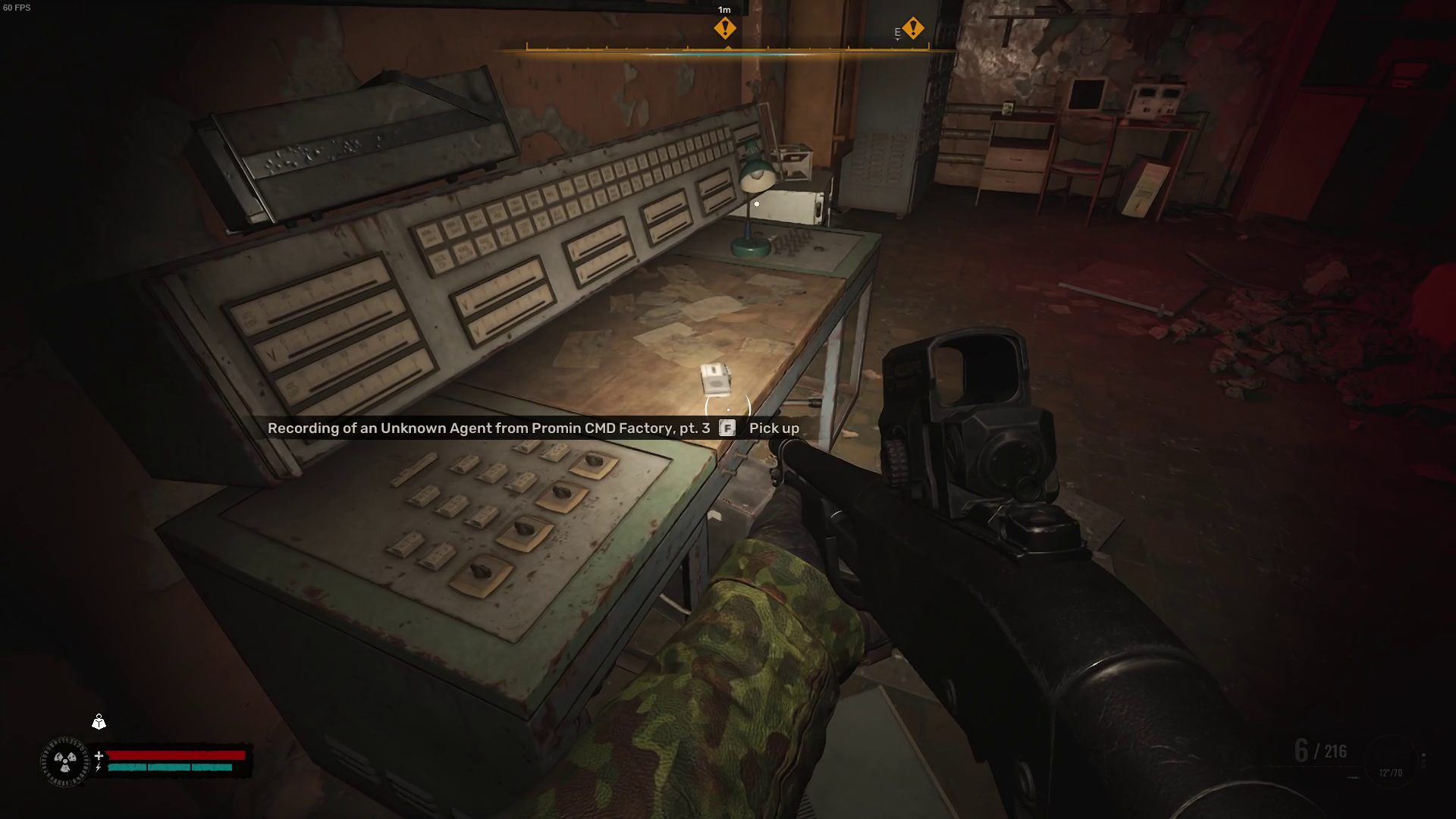 W pomieszczeniu z czerwonymi ścianami skręćcie drzwiami na lewo, by trafić do pomieszczenia kontrolnego. Podnieście dyktafon z pulpitu.
