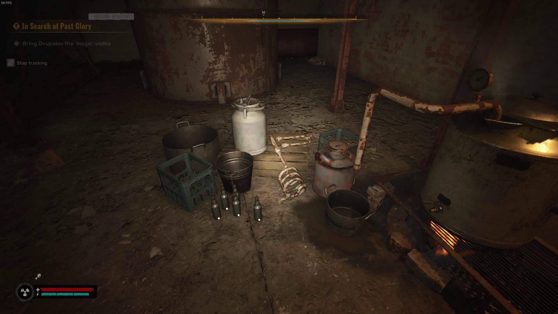 Porozmawiajcie z Dwupałowem. Poprosi Was o przyniesienie wódki. Przejdźcie do dużego pomieszczenia i podnieście alkohol leżący obok destylatora. Wystarczy Wam jedna butelka, ale jeżeli chcecie, możecie wziąć sobie wszystkie.