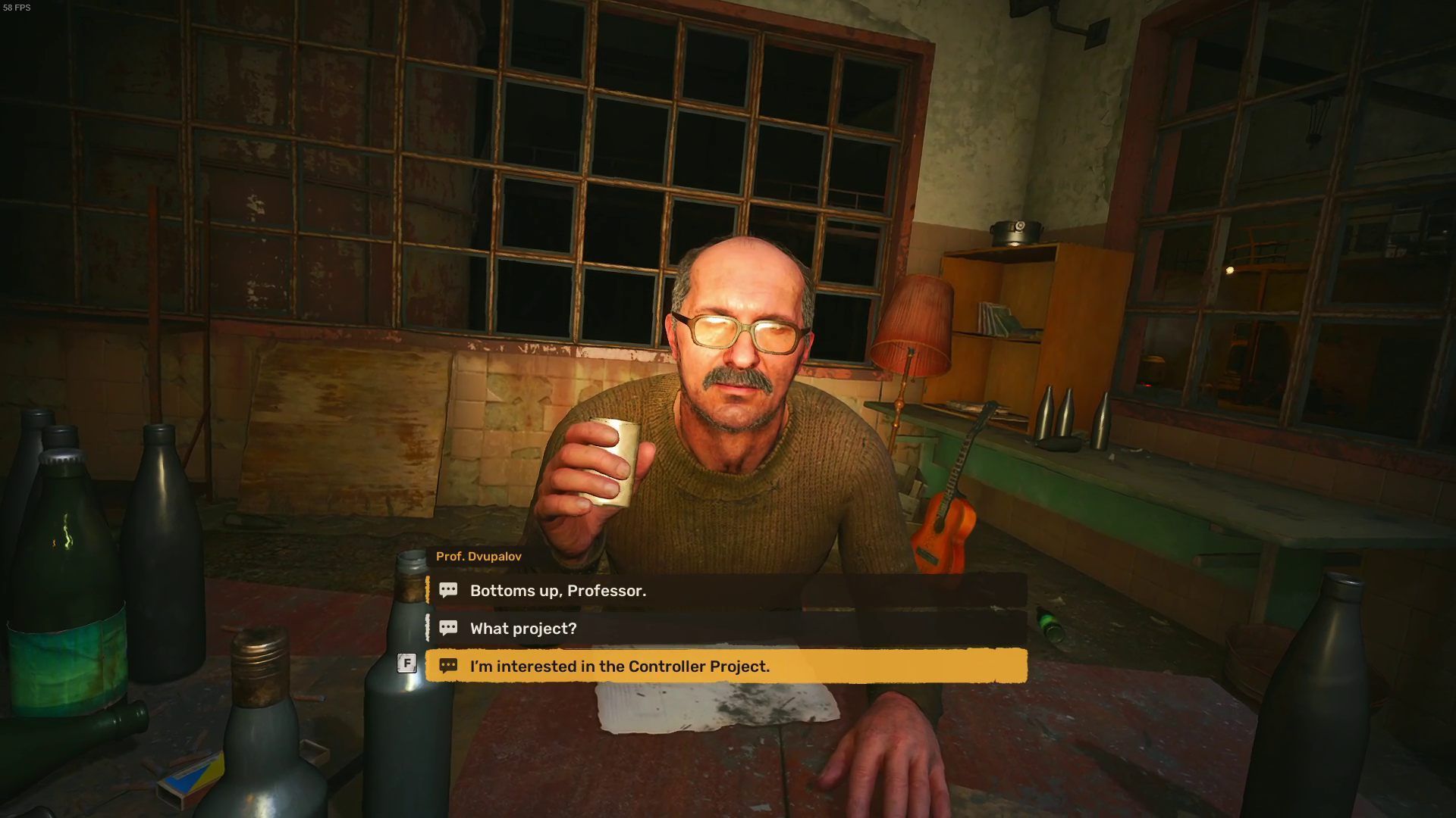 Wróćcie do profesora, który zaprosi Was do wspólnego picia. W trakcie rozmowy nie odmawiajcie kolejnych kieliszków. Po trzeciej kolejce Dwupałow zgodzi się Wam pomóc.