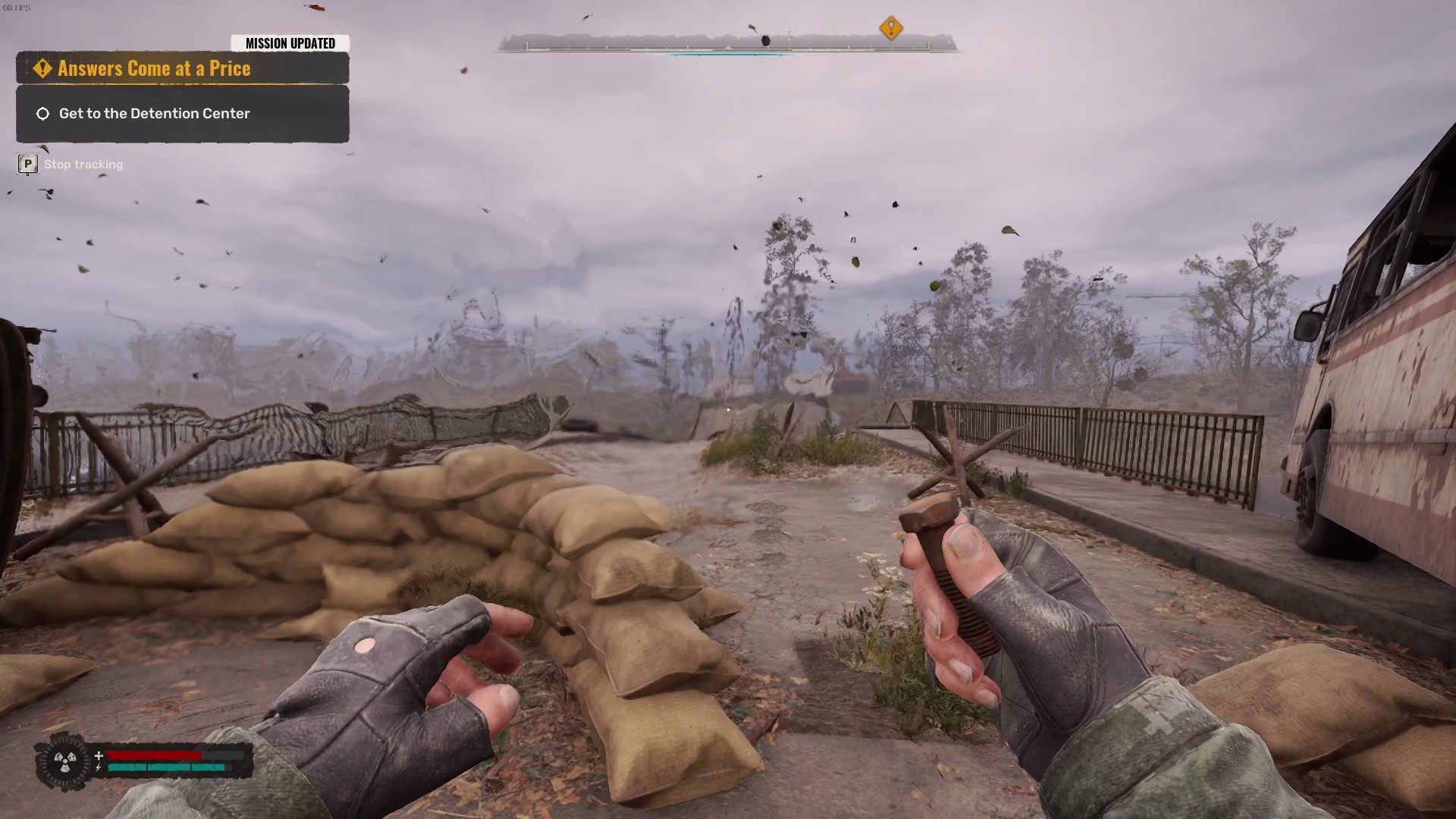 Gdy emisja się skończy, możecie wyjść z bunkra i ruszyć drogą na północ w kierunku punktu kontrolnego.