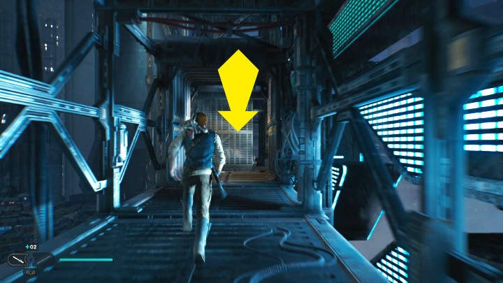 Po rozpoczęciu rozgrywki zobaczycie, że Cal Kestis został przywieziony w roli więźnia na planetę Coruscant. Podążajcie za eskortą, nie schodząc ze ścieżki.