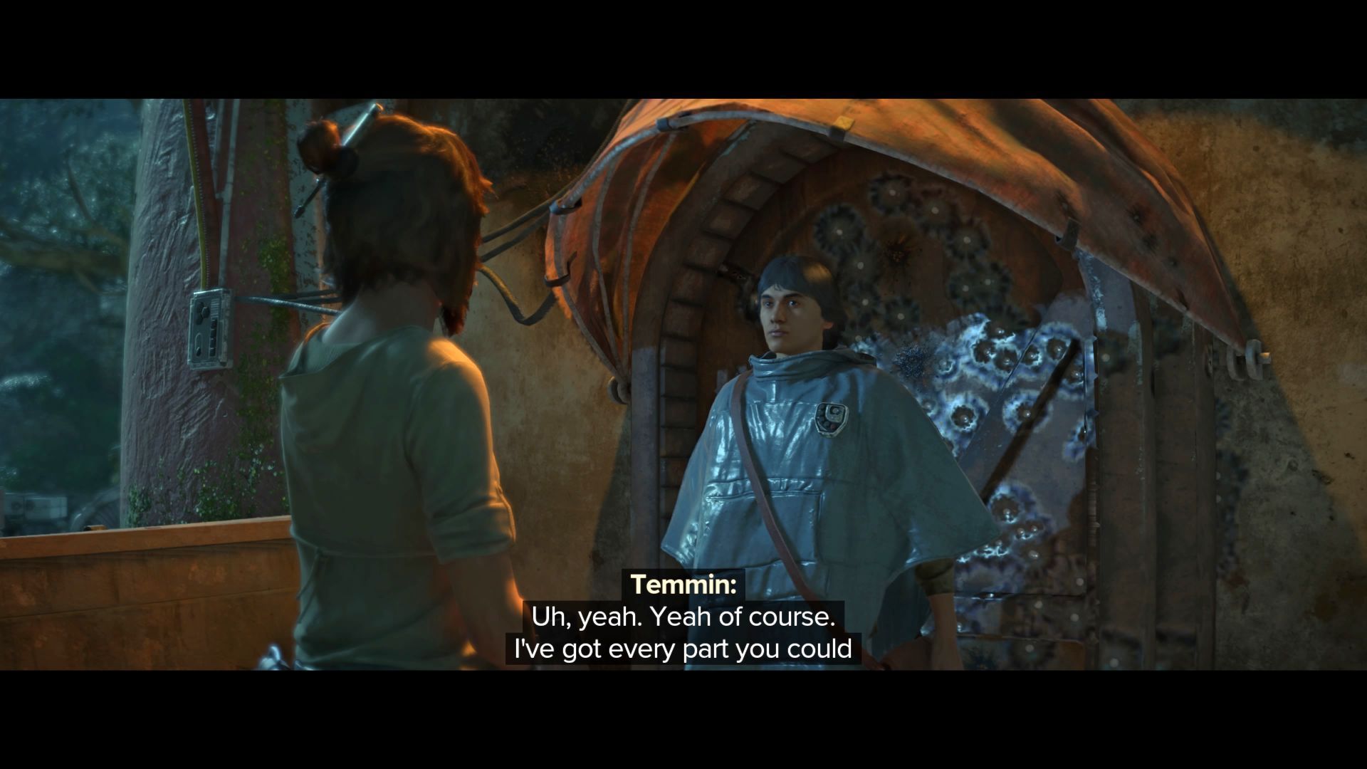 - Zacznijcie śledzić nowy quest w dzienniku i wyruszcie do wskazanej lokacji w dżungli. Musicie pokonać bandytów i dopiero wtedy możecie podejść do budynku i porozmawiać z Temminem na temat ulepszenia ścigacza.
