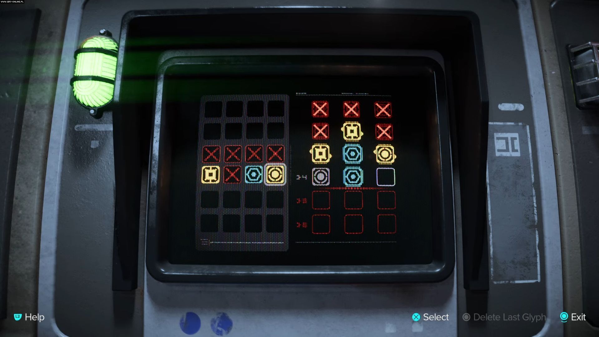 Założeniem minigry jest ustalenie prawidłowej kombinacji glifów mając do tego ograniczoną liczbę prób. Minigrę możecie powtarzać, a także cofać ostatni ruch. Komputer odpowiada na Wasze próby włamania kolorami: