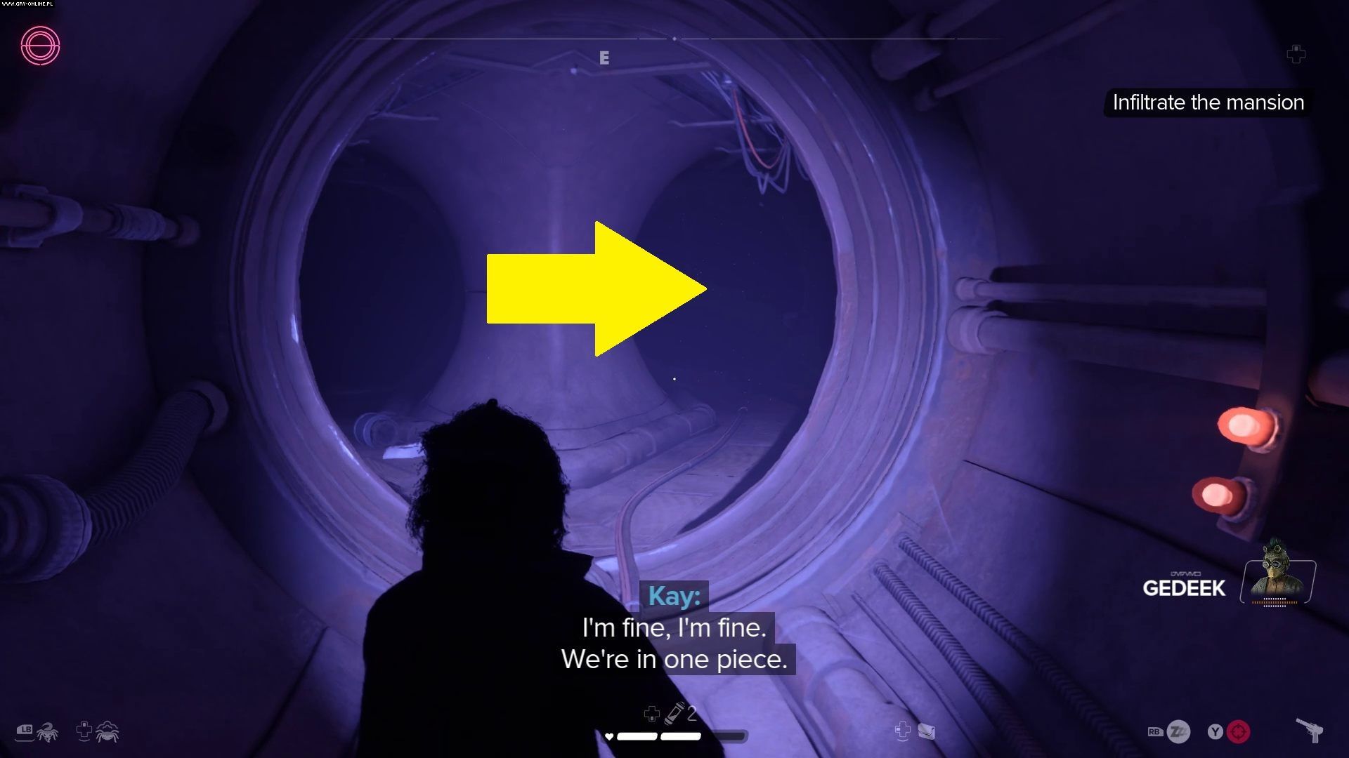 Po tym jak pod Kay zerwie się jeden z uchwytów, protagonistka zostanie oddzielona od grupy. Idąc samotnie tunelami skręćcie najpierw w lewo, a następnie w prawo. Po chwili traficie wreszcie do hangaru wypełnionego przeciwnikami.
