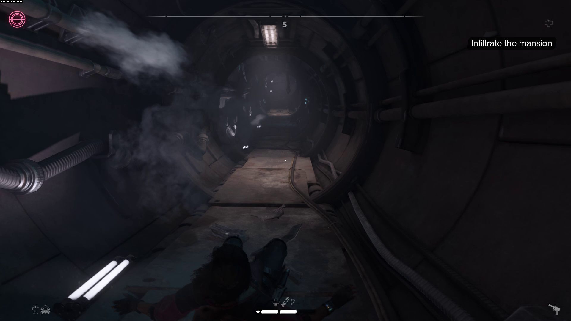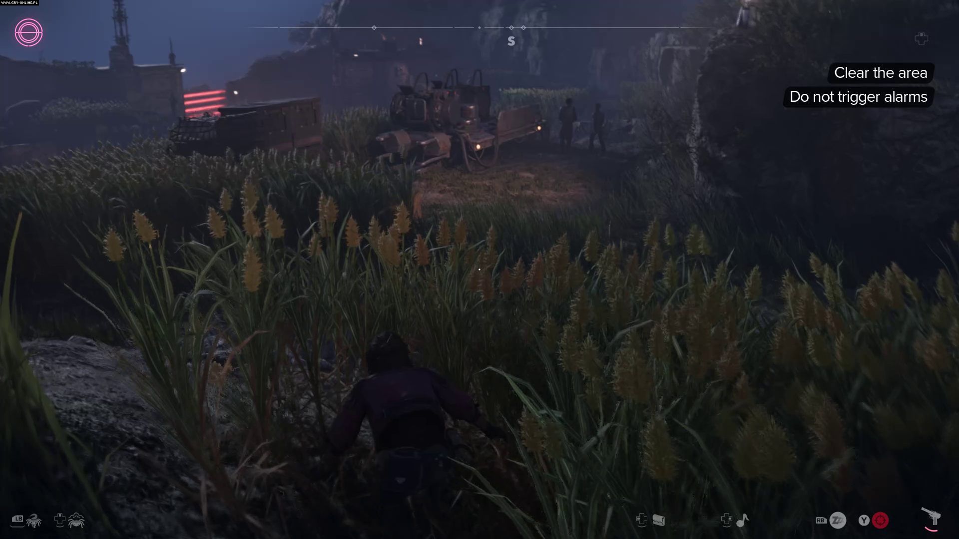 Po krótkiej wycieczce po wzgórzach traficie wreszcie na przedmurza posiadłości. Waszym pierwszym zadaniem będzie oczyszczenie niewielkiego poletka ze strażników. Wysoka trawa rośnie tutaj dość gęsto więc nie powinniście mieć problemów z odwracaniem uwagi pojedynczych strażników. Wyeliminujcie wszystkich nie wzbudzając alarmu, a następnie zbliżcie się do pola siłowego.