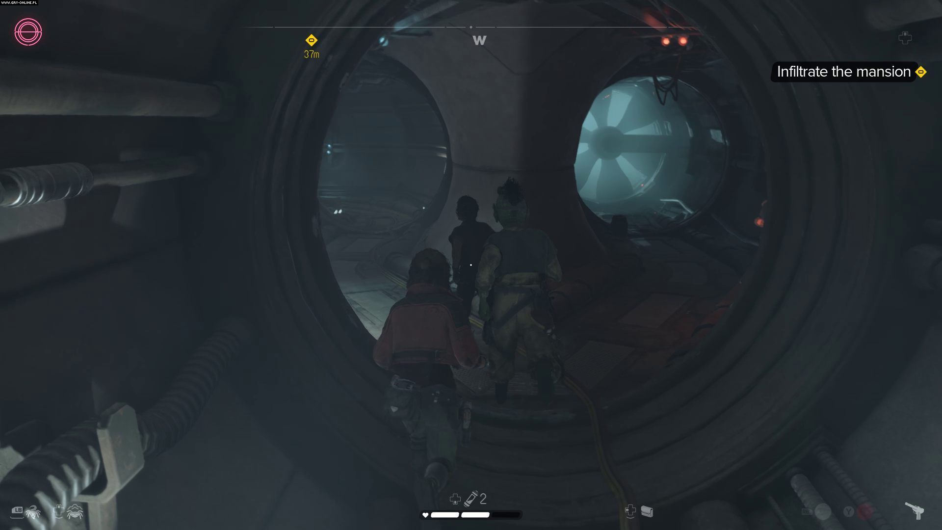 W cylindrycznym pomieszczeniu zejdźcie na sam dół i z pomocą Nixa zestrzelcie układ zasilania wiatraka. Pozwoli to Waszemu zespołowi wejść do wentylacji. Podążajcie dalej za Riko.