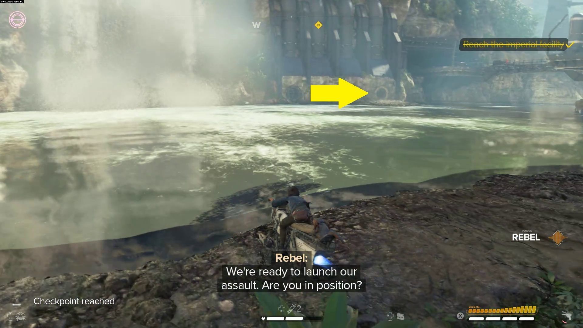 Po dotarciu do droida alfa wraz z Gedeekiem zostaniecie zaatakowani przez nacierające stale oddziały szturmowców. Korzystajcie z osłon, granatów oraz zdobycznej broni, by odepchnąć agresorów. Uważajcie, bo część przeciwników uzbrojona będzie w karabiny snajperskie, granaty oraz tarcze.