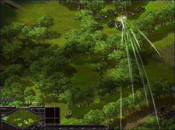 Po zniszczeniu fabryki wycofaj swoje wojska na północ - do innych twoich jednostek. W tym samym czasie powinny nadlecieć niemieckie bombowce, które zbombardują twoje miasto. Zbombardowane zostaną wszystkie domy na środku i wszystkie jednostki dookoła tych domów. Wycofaj je w jakieś bezpieczne miejsce. Zaraz po bombardowaniu rozpocznie się atak z północy na twoje miasto. Zgromadź wszystkie swoje jednostki możliwie jak najbliżej siebie, aby mogły zadawać większe straty naraz przeciwnikowi. Nie powinieneś mieć jednak większych strat, ponieważ masz olbrzymią przewagę liczebną. Najwyżej przeprowadź małą inwazję na północ i zniszcz wszystko co znajdzie się na twojej drodze. Wróćmy do Calliope i M-5 Stewart'a.