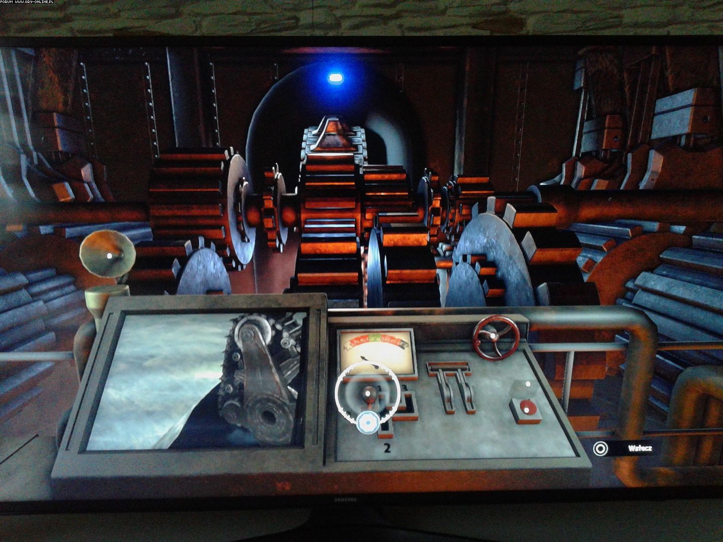Z tyłu ustawiacie odpowiednie filtry (zgodnie z symbolami na kiju, tak samo kolory zgodnie z kolorami na kiju) i najważniejsze ten zawór z lewej strony gdy jest odkrecony to rurą leci dym. Najeży ten zawór zakręcić. A najgorsze jest to że to koniec gry:( Pozdrawiam
