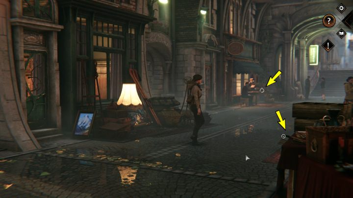 - Rozejrzyj się po stoiskach, zanim porozmawiasz z antykwariuszem - cel dodatkowy (Explore the stalls before you talk to the antiques dealer - secondary objective)