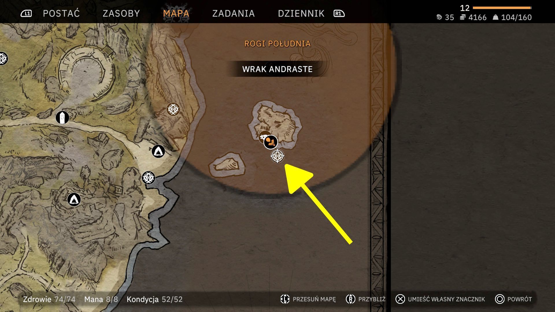 - Mając aktywny quest w dzienniku obszarem poszukiwań będzie akwen wodny we wschodniej części regionu. Musicie dopłynąć do małej wyspy pokazanej na dołączonych obrazkach. Powinniście też łatwo dostrzec wrak poszukiwanego statku.