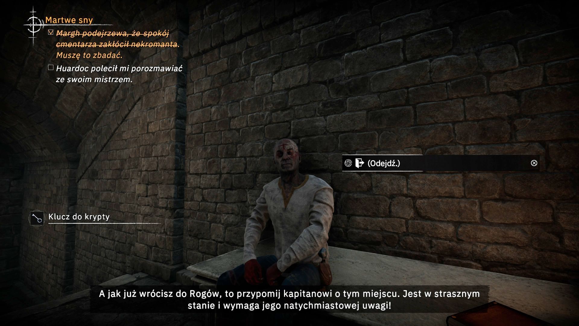 - Po wejściu do krypty spotkaliście Huardoka, który mógł Wam podarować "zwykły" klucz do krypty - to nie ten klucz, którego szukacie. Standardowy klucz umożliwi jedynie dotarcie do komnaty z "mistrzem" - nekromantą.