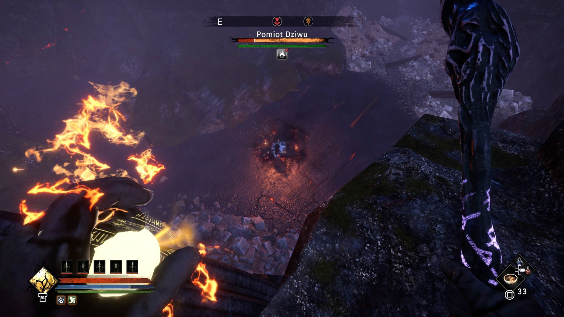 - Po dotarciu na dół lokacji Chochoł wyruszcie na wschód i zabijajcie po drodze kolejne pomioty Dziwu. Dotrzecie do małego wejścia do ruin (powyższy obrazek).