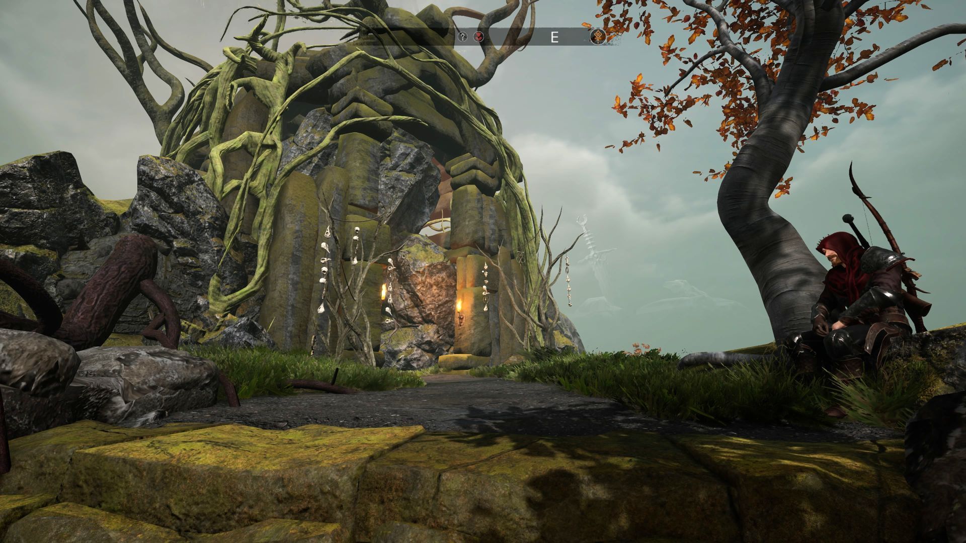 - Dotrzyjcie do Kapliczki Zapomnianego Boga na wzgórzu na północ od plaży, na której rozpoczyna się eksplorację pierwszego regionu. Spotkacie tam Caradoca, znajdziecie też wejście do lochu Leże Bestii.