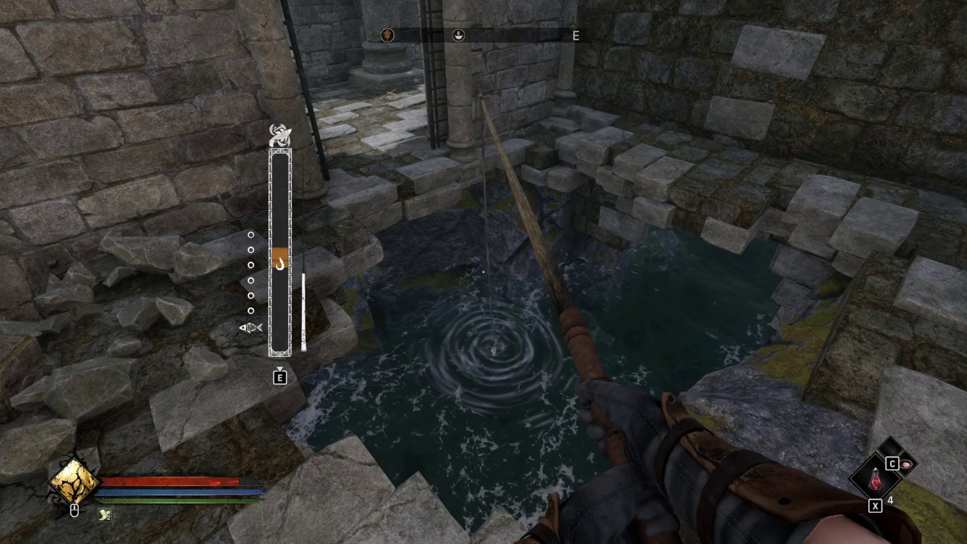 Łowienie ryb w Tainted Grail przypomina nieco analogiczne minigry z innych współczesnych tytułów. Po wyekwipowaniu wędki zbliżcie się do zbiornika wodnego. Na ekranie pojawi się komunikat z przyciskiem.