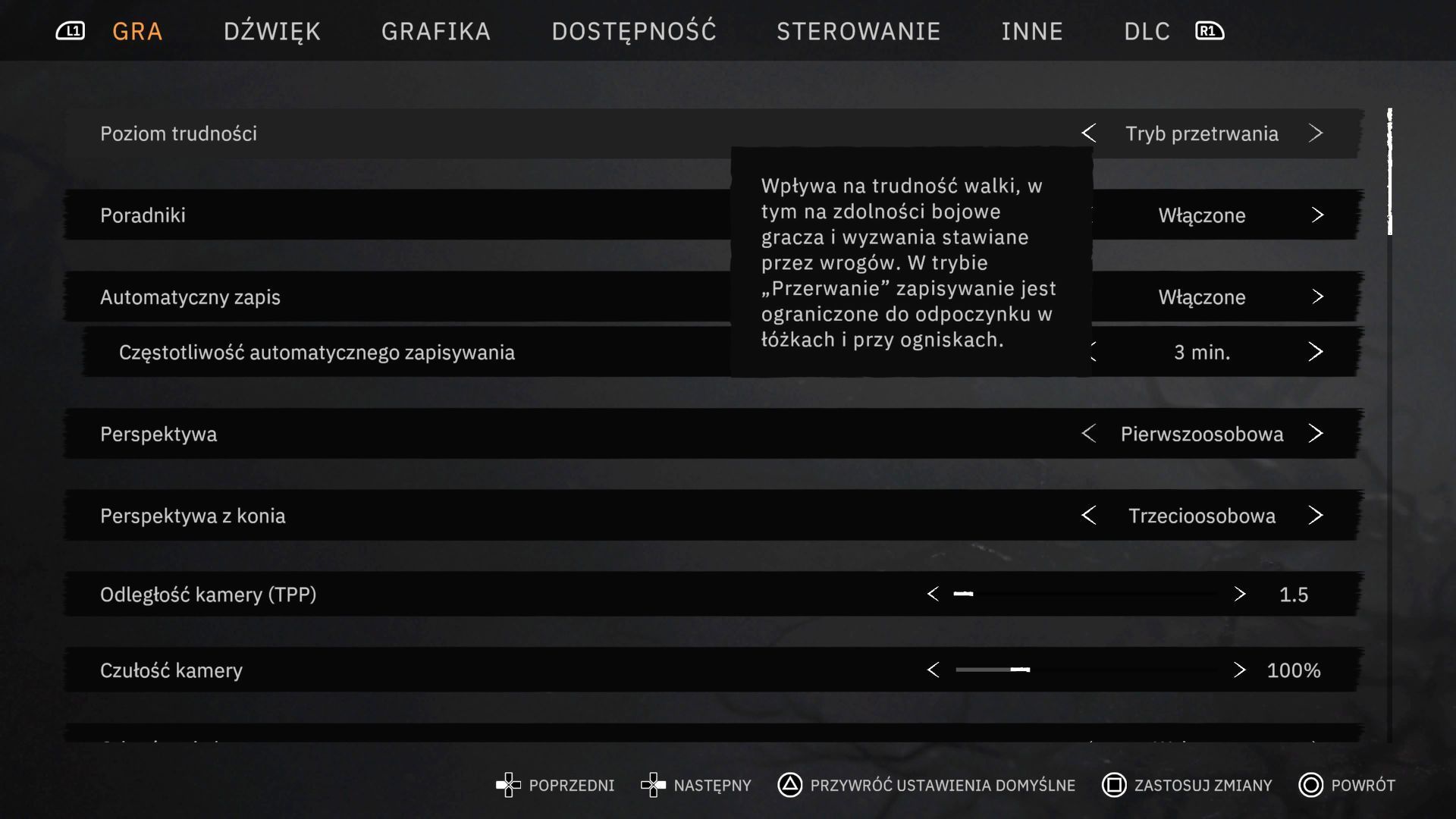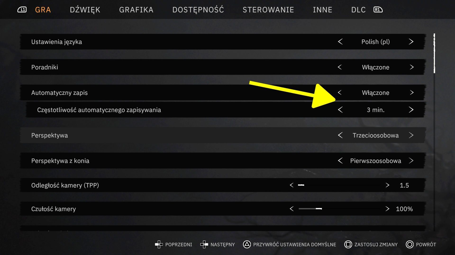 - Możecie również regulować częstotliwość automatycznego zapisywania postępów i dokonuje się tego w zakładce Gra w menu opcji.