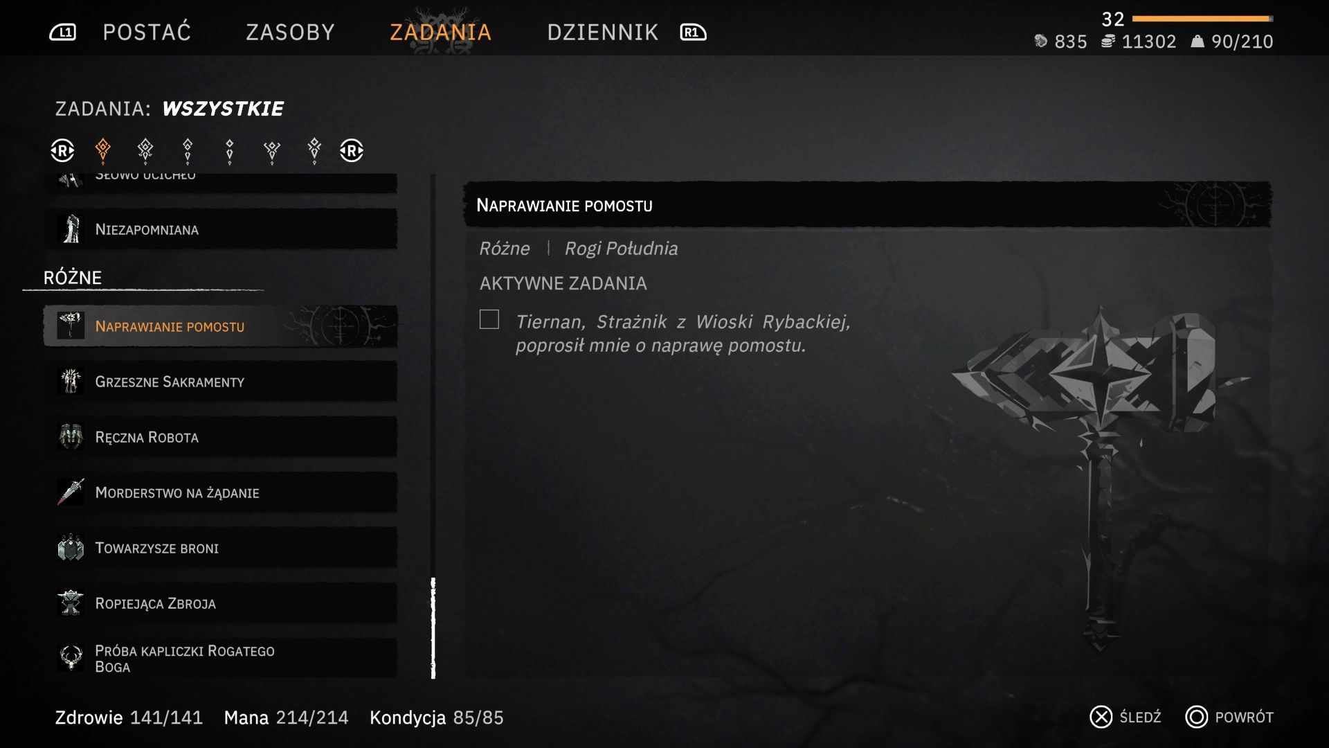 - Drewna możecie tez potrzebować do ukończenia niektórych questów. Przykładem może tu być drobna misja Naprawianie mostu z pierwszego regionu Rogi Południa. Strażnik Tiernan z zachodniej Wioski poprosi bohatera o dokonanie napraw, do czegopotrzeba 50 sztuk drewna. Prawdopodobnie nie będziecie mieli tyle materiału, więc odłożycie quest na później.