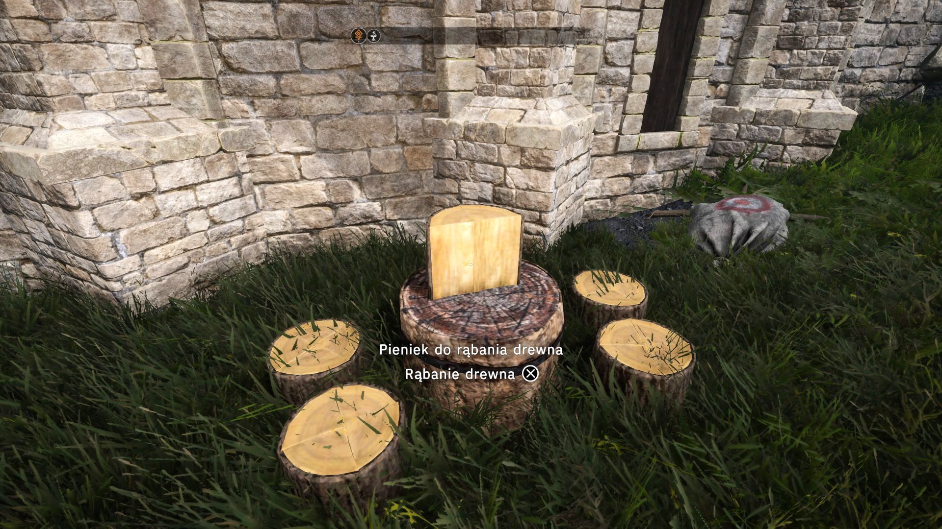 - Każda interakcja z pieńkiem to 2 sztuki drewna, przy czym nie możecie pozyskiwać drewna w nieskończoność. Po kilku akcjach pieniek się wyczerpie.